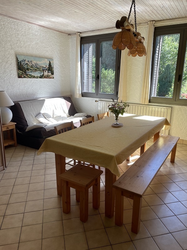 Logement à l'étage de la maison des propriétaires où se trouvent aussi 2 autres gîtes. Cuisine-séjour, wc indépandant, congélateur. ch1: 1 lit 2 pl, ch2: 1 lit 2 pl, 2 lits 1 pl, 2 salles d'eau dont une avec les wc intégrés. Buanderie commune. Cour et jardin non clos communs aux 2 autre gîtes, salon de jardin, barbecue, jeux pour enfants, balançoire, terrain de pétanque. Chauffage central. Option ménage. Toutes charges comprises. Parc: 5600 m².