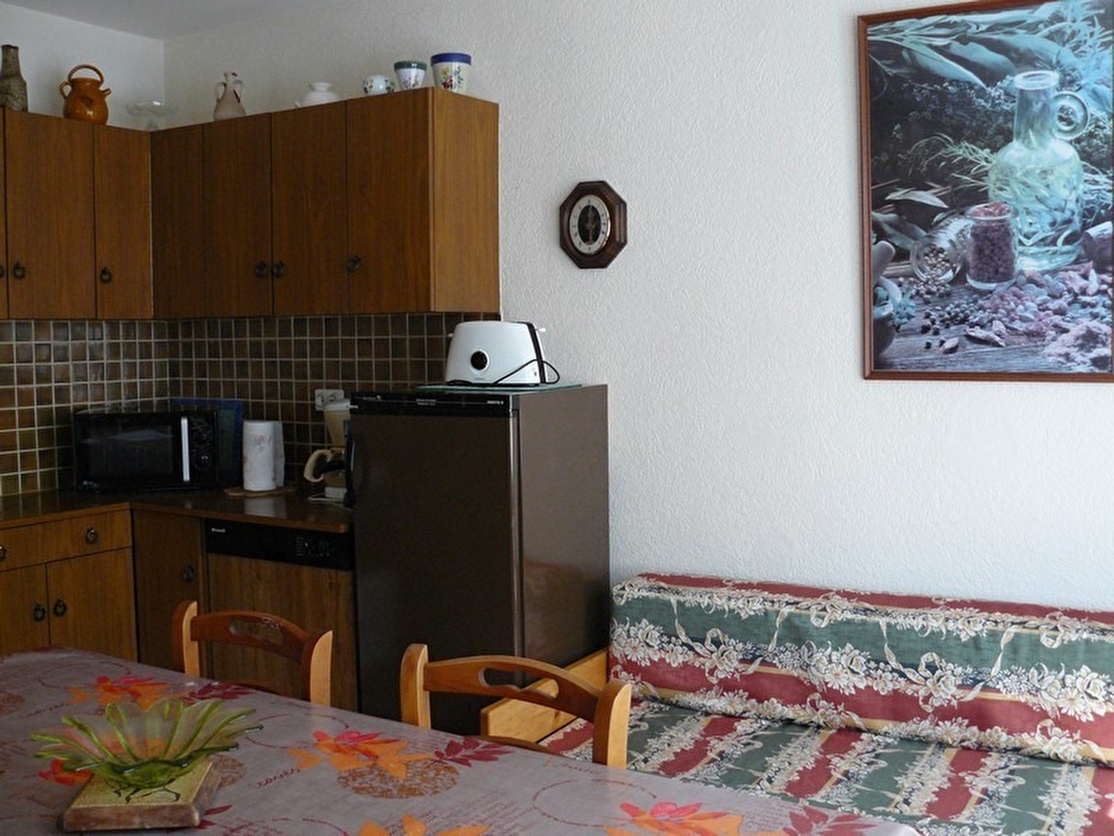 Logement au rez de chaussée. Hall d'entrée avec vestiaire, cuisine-séjour, salle d'eau, wc indépendant, ch1: 1 lit 2 pl, ch2: 1 lit 1 pl, canapé convertible, salon de jardin. Chauffage électrique. Toutes charges comprises. Forfait ménage à 30€.