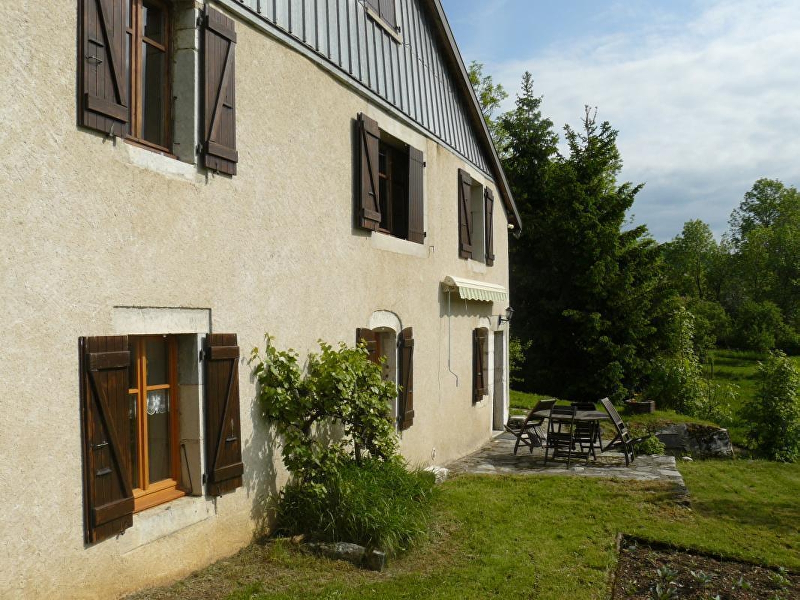 Logement au RDC. Cuisine-séjour, salle d'eau, WC séparé, ch1: 1 lit 2 pl, 2 lits 1 pl, terrain attenant, cour, salon de jardin, barbecue. Chauffage central aux granulés de bois et production d'électricité par 36m² de panneaux solaires photovoltaïques. Toutes charges comprises. Label WWF. Garage à disposition en hiver. Production d'eau chaude par panneaux solaires thermiques et récupérateur d'eau de pluie pour toilettes.