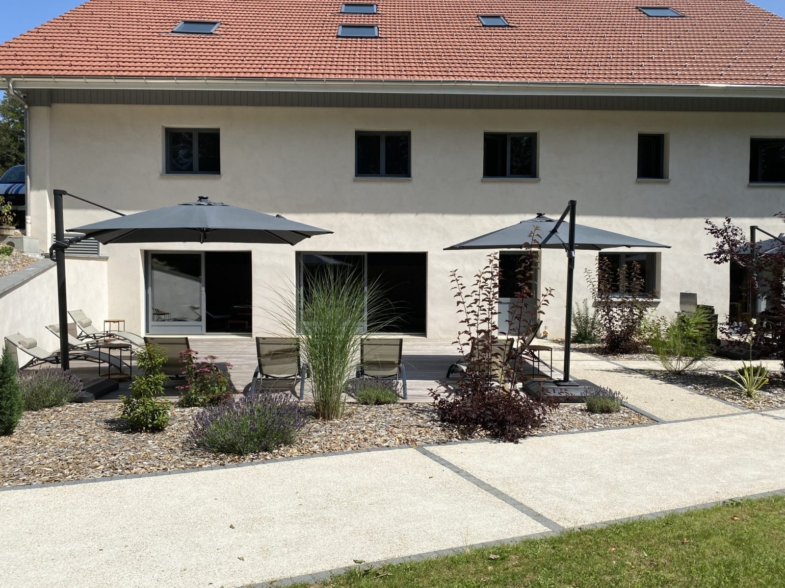 A l’extérieur, une grande terrasse est à votre disposition pour vos repas estivaux ainsi qu’un barbecue/plancha. Vous pourrez également profiter de notre terrain de pétanque ainsi que de l’ensemble de notre vaste parc pour des jeux en plein air ou simplement vous reposer.