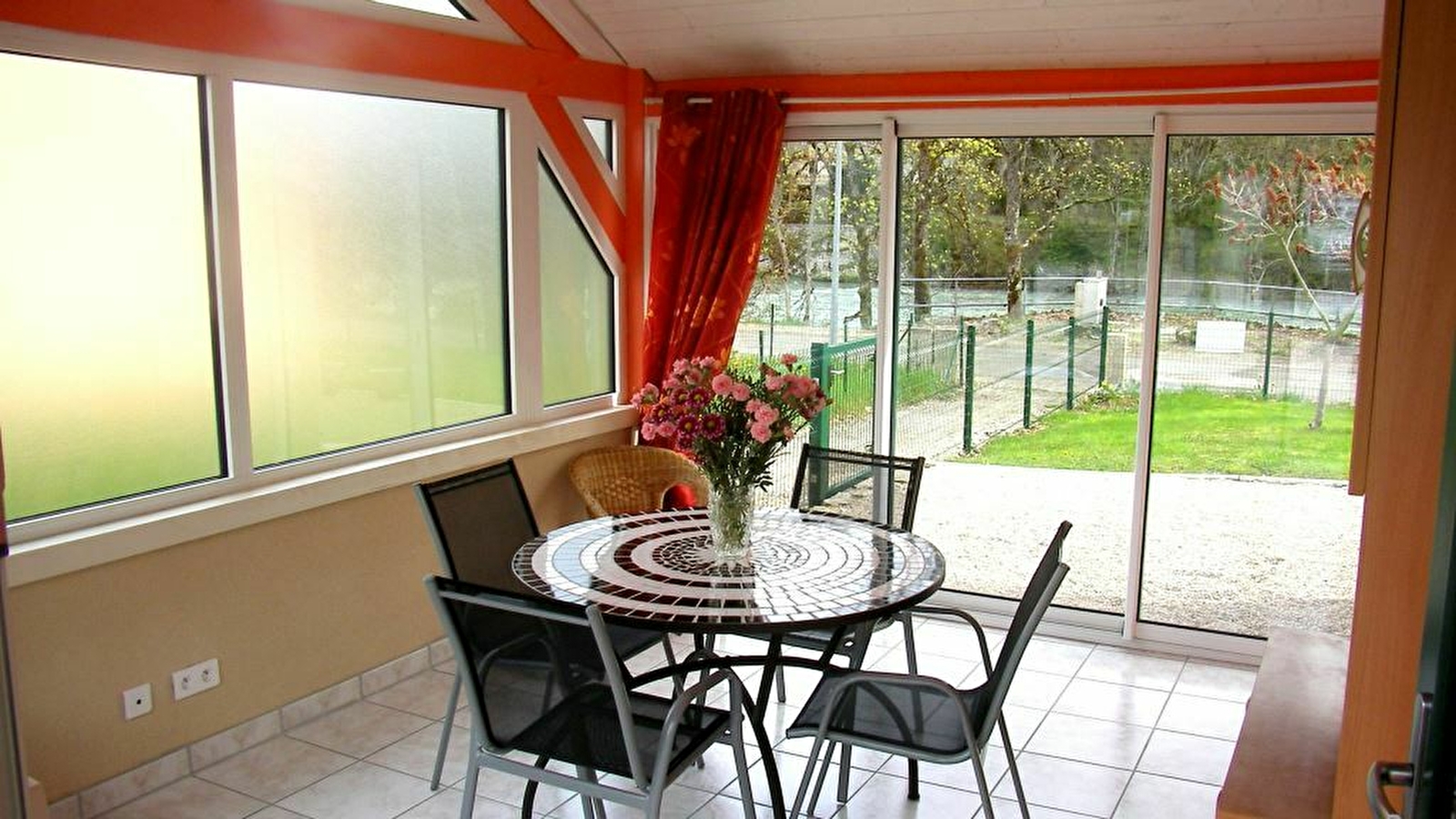 Tous commerces sur place à deux pas du centre du village. Quartier calme proche lac de Vouglans et port de la Saisse. Grande pièce principale avec coin salon, coin cuisine, 2 chambres avec chacune 1 lit deux personnes, salle d'eau et WC indépendant, une agréable véranda avec vue sur la rivière d'Ain. Tout confort (LL, LV, écran plat, réfrigérateur avec compartiment congélateur 46 litres, micro-ondes, cuisini. électrique etc...) Abri de jardin, terrasse avec barbecue, salon de jardin.