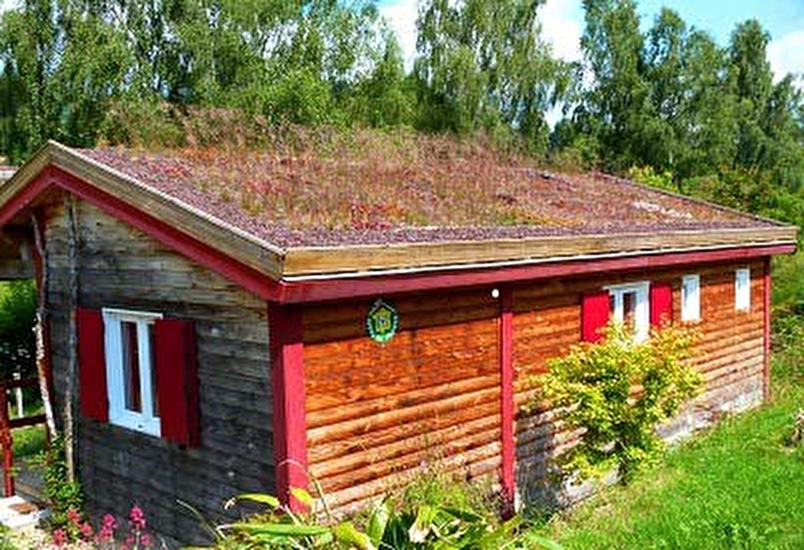 Chaque chalet porte le nom d'une fleur. Au rez-de-chaussée : spacieux séjour (coin salon convertible 2 personnes), coin cuisine équipé, 2 chambres (1 lit 2 personnes, 3 lits 1 personne dont 2 superposés), salle d'eau, wc. Chauffage électrique. Terrasse couverte. Etang privé (matériel de pêche à disposition). Mise à disposition de raquettes pour les randonnées hivernales. Commerces et services à 8 km.