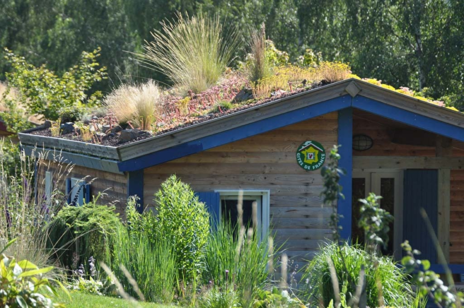 Les plantes et les fleurs sont les autres passions d'Olivier et Martine qui gèrent une pépinière. Ce chalet est décoré de bleu comme la pervenche dont il porte le nom. Il bénéficie, lui aussi, d'un très bel environnement calme et paisible. Rez-de-chaussée : séjour (coin salon convertible 2 personnes), coin cuisine équipé, 2 chambres (1 lit 2 personnes 2 lits 1 personne superposés), salle d'eau, wc. Chauffage électrique. Terrasse couverte. Etang privé (matériel de pêche à disposition). Mise à disposition de raquettes pour les randonnées hivernales. Commerces et services à 8 km.