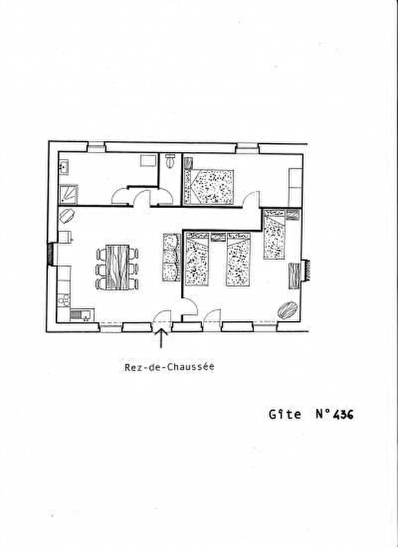 Maison individuelle de plain pied dans un hameau. Cuisine avec four électrique/séjour, 1 chambre (1 lit 140) et 1 chambre (1 lit 140 et 1 lit 90), salle d'eau et WC indépendant.