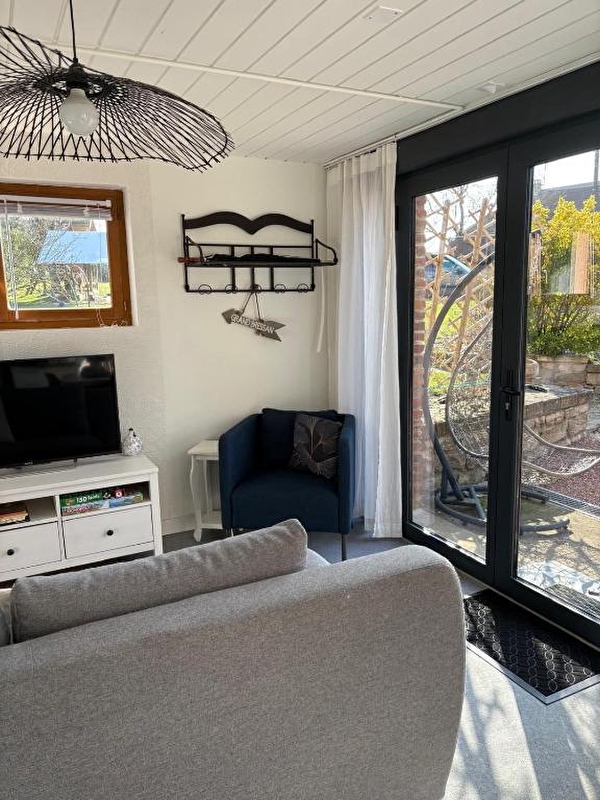 Gîte situé au rez-de-chaussée d'une maison indépendante dans le parc d’une ancienne ferme bressane: Le Grand Bressan est un appartement 2 pièces de plein pied d'environ 45m² avec cuisine, coin repas, salle de bain, coin salon et chambre séparée. Lit de 180cm x 200cm dans la chambre et canapé lit de 140cm x 200 cm dans le salon le tout pour 4 personnes.