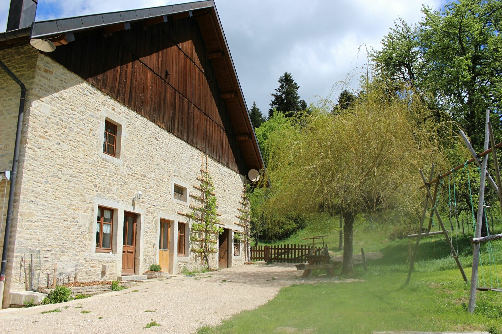 Ferme rénovée, située en pleine nature avec vue panoramique sur le hameau de la Joux. Paysage typique du Haut-Doubs. Vaste terrain non clos ; balançoires . Possibilité forfait ménage.