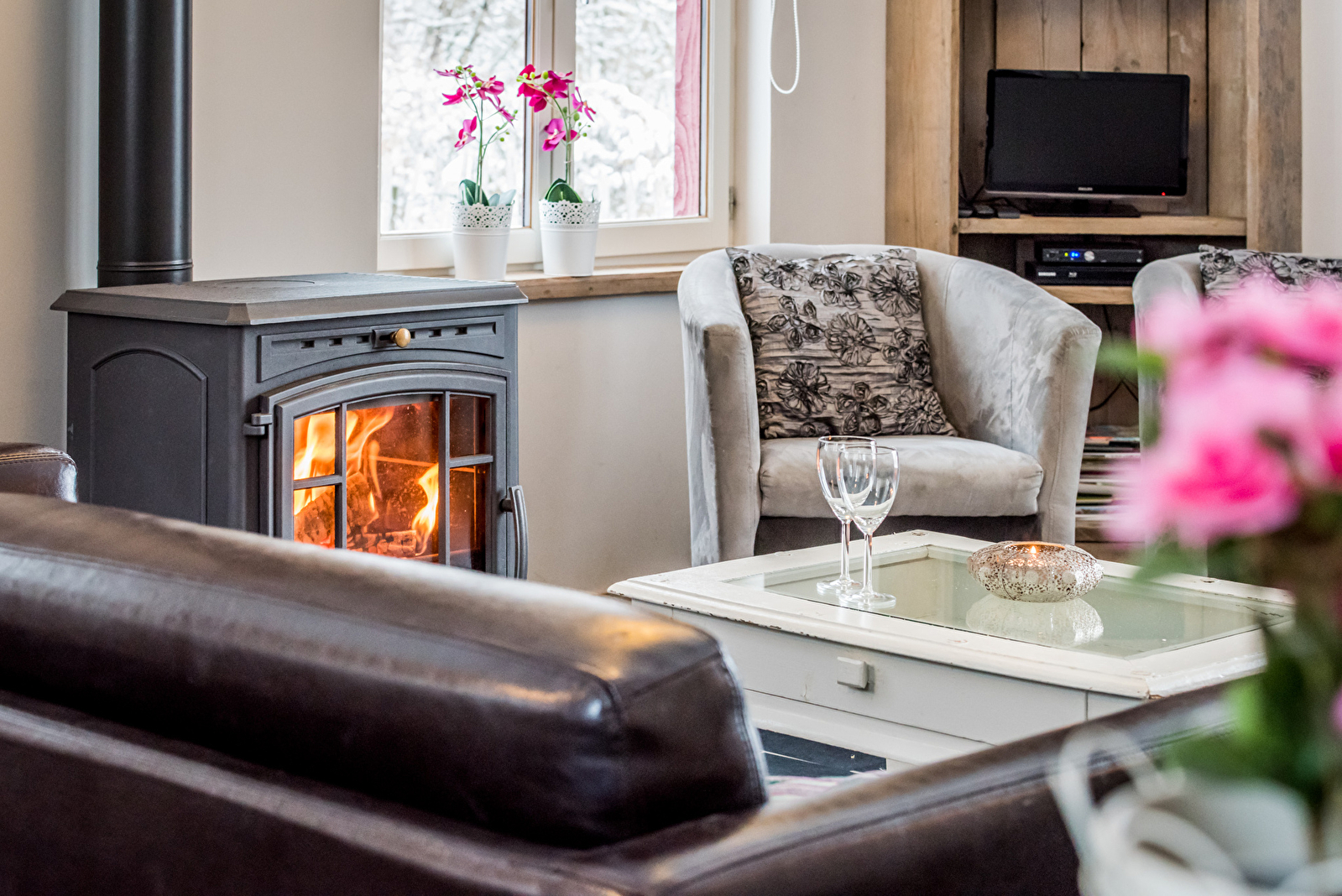 Le gîte Tarin est magnifiquement situé au bord du pré deschevaux et à côté de la forêt. Vous avez une maqnifique terrasse de ce côté de la maison avec vue sur la vallée vers Saint Prix et les montagnes environnantes.