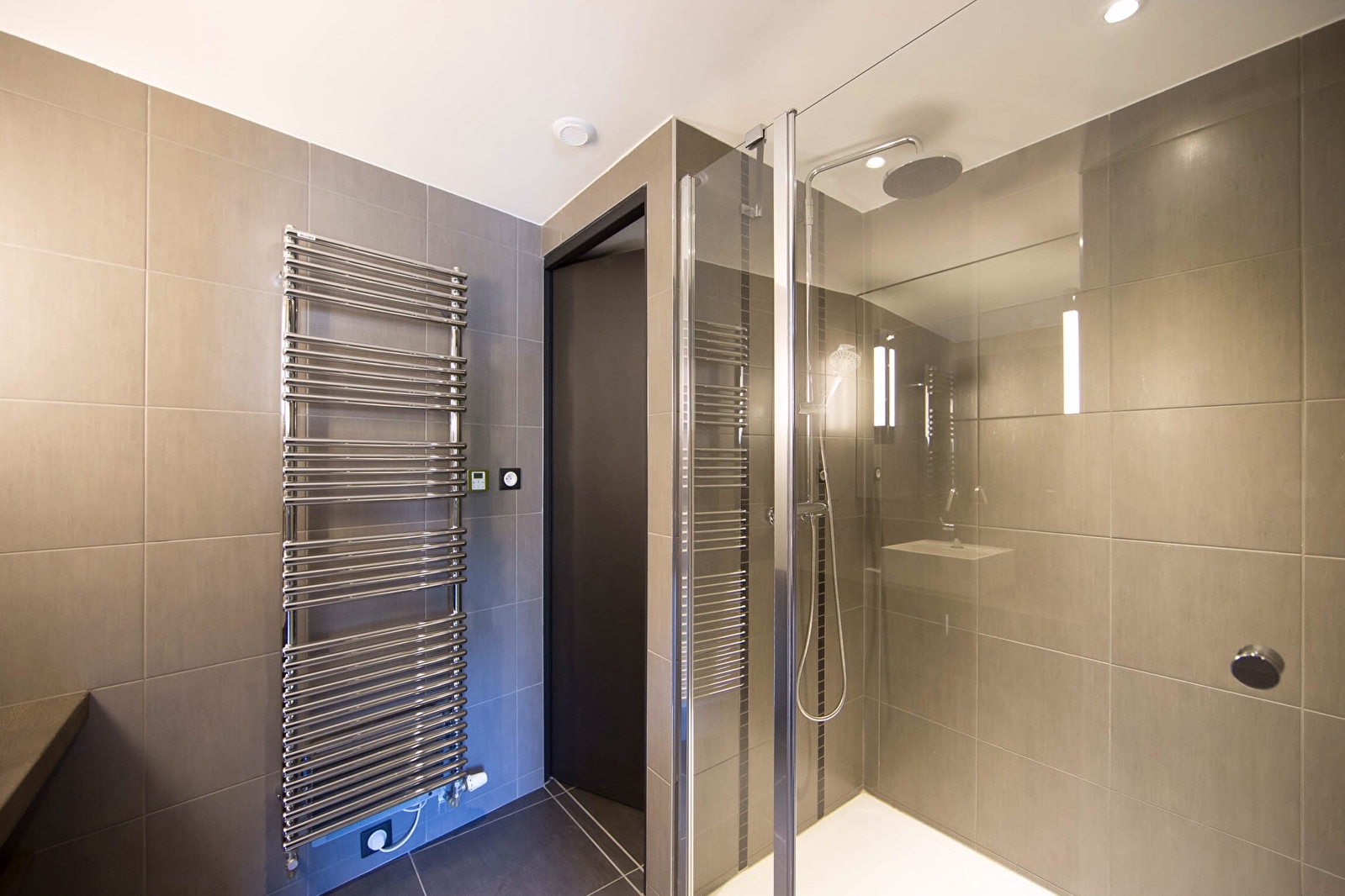 Vaste salle de bains, douche à l'italienne, toilettes séparées sauf chambre 5.