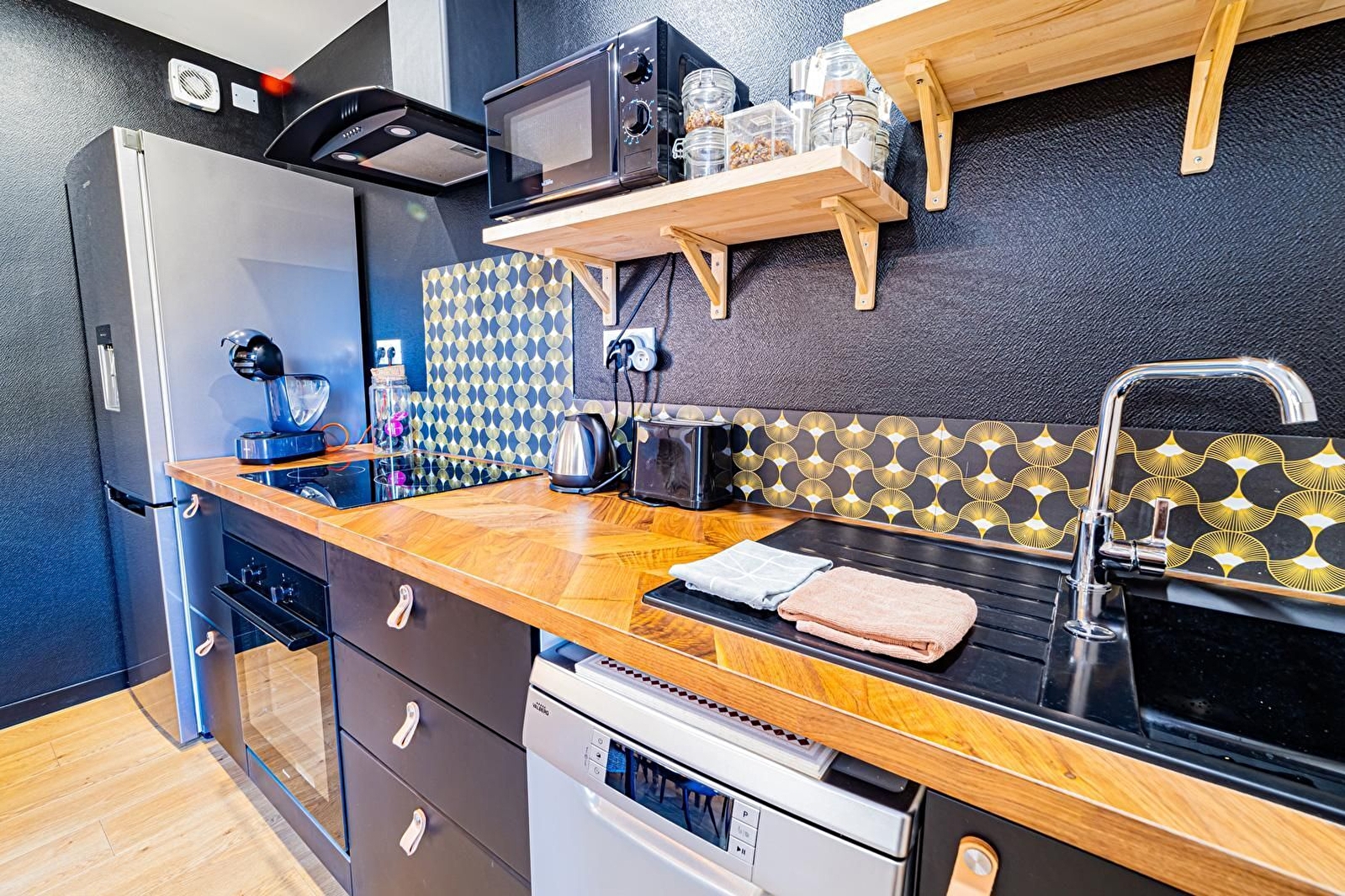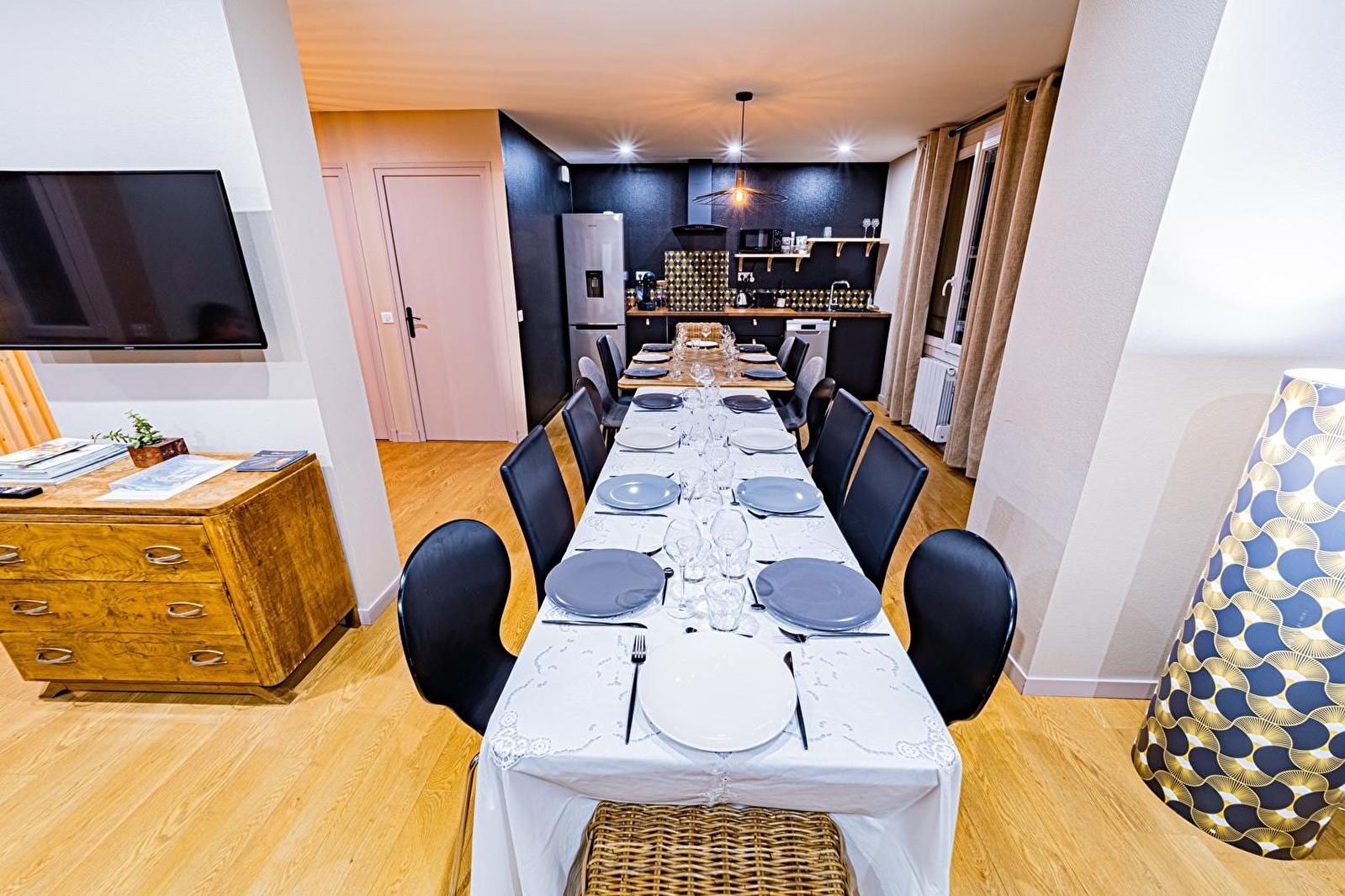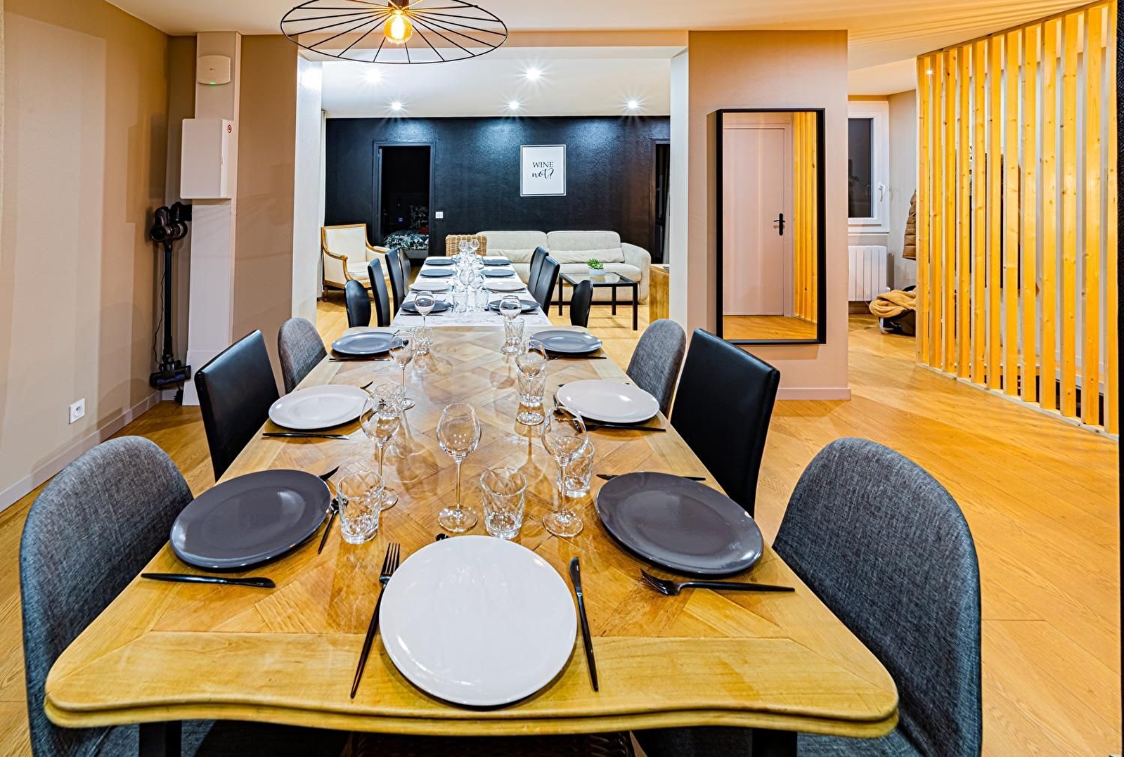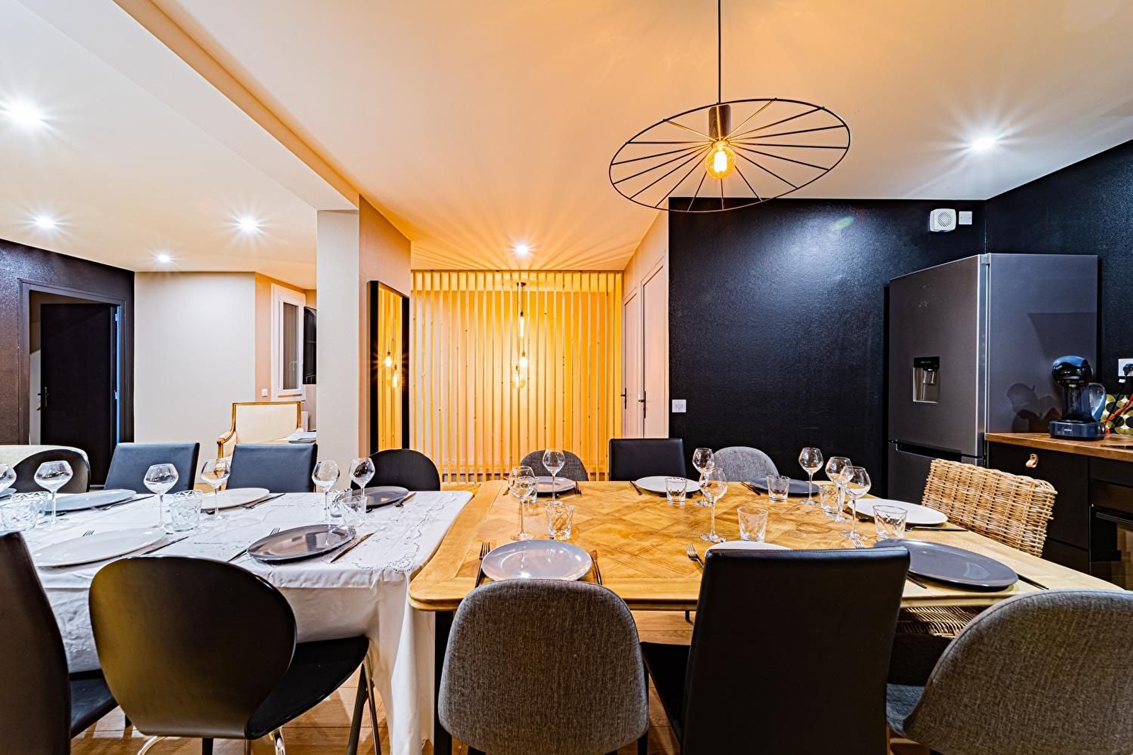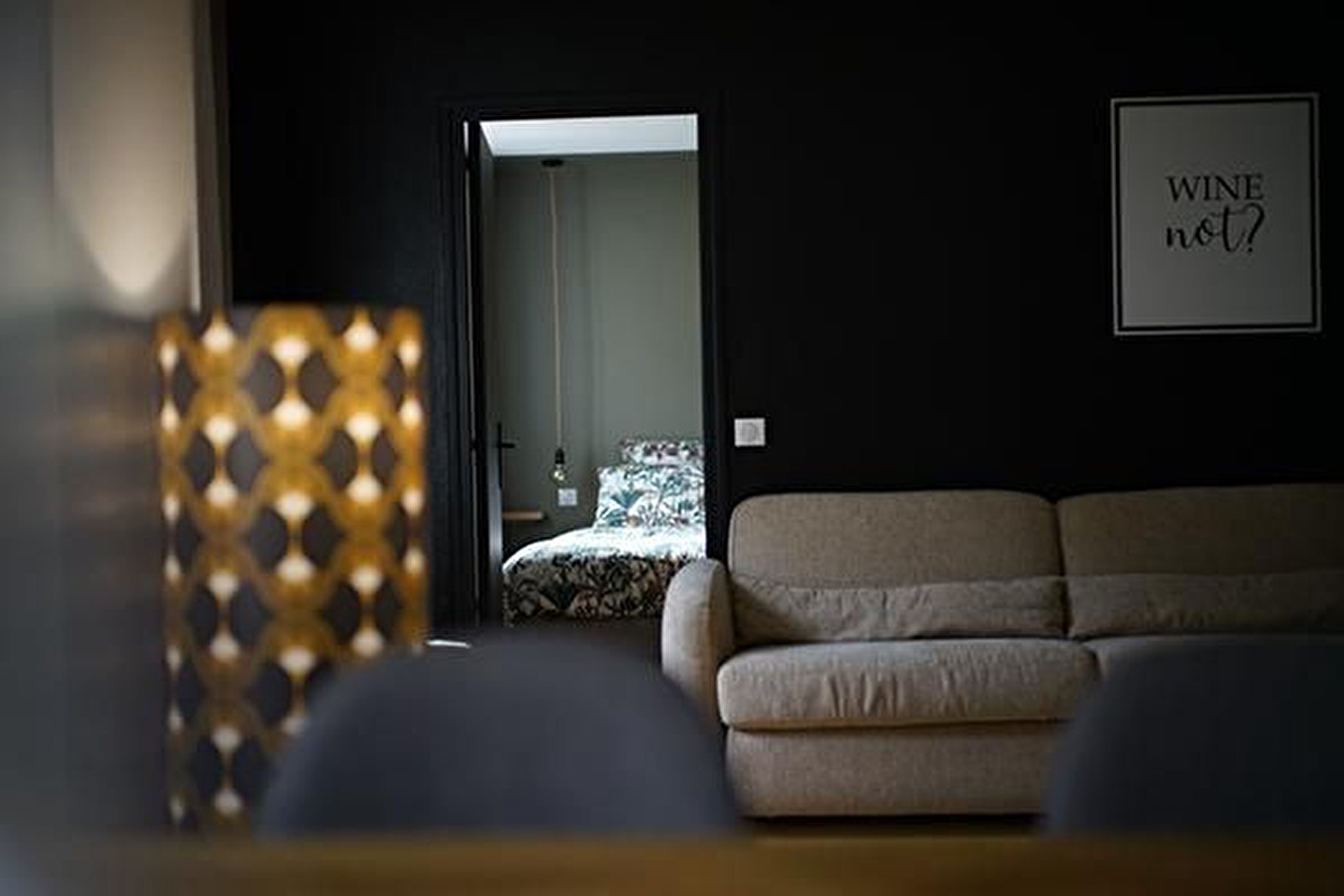 - Le gîte Le Floral ,au 1er étage se compose d'un vaste séjour avec cuisine équipée, salon avec canapé convertible en 160x200, séparé du coin nuit avec lit 160x200 par une claustra contemporaine. Salle d'eau et WC indépendant.