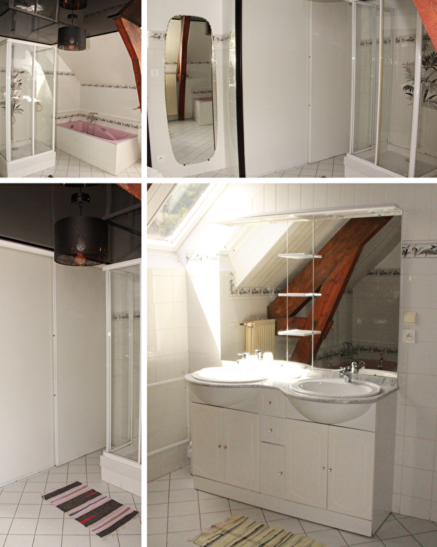 Grand studio de 45 m² sous toit, comprenant une vaste pièce à vivre très lumineuse avec lit double et clic-clac, une kitchenette entièrement équipée, une salle de bains avec baignoire, douche et double vasque. WC séparés. Wifi.