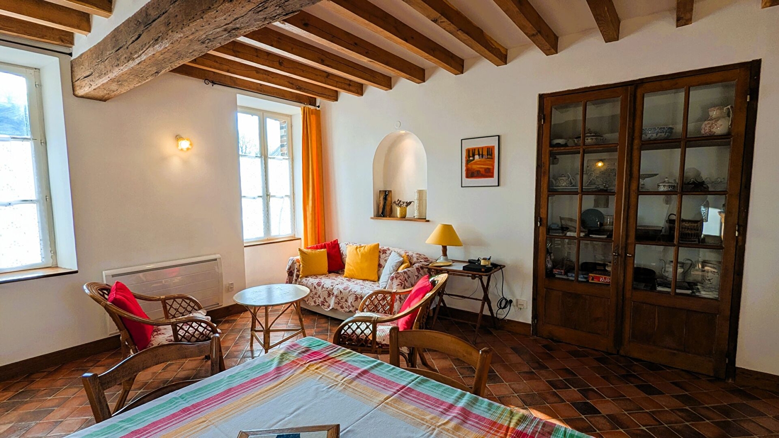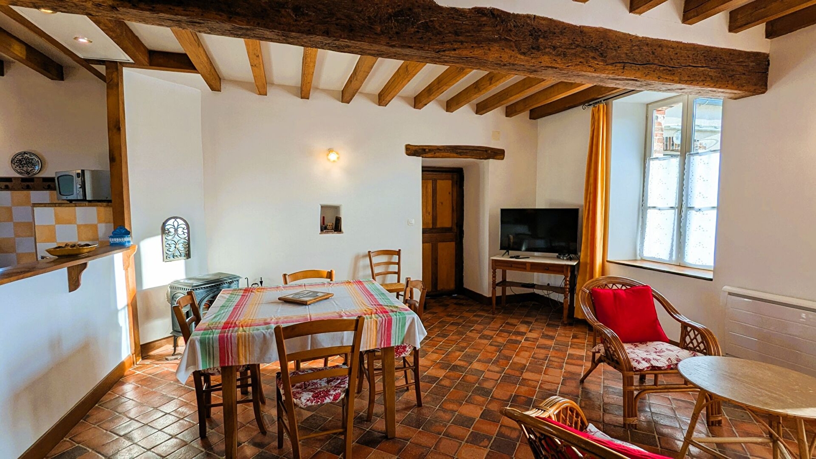 Charges et options : Location linge de lit : drap 1 personne 7€ / drap 2 personnes 14€ / linge de toilette par personne : 5€ / Ménage fin de séjour : 50 € / Stère bois : 50€. Chauffage, électricité en sus (8 kwh inclus/jour).