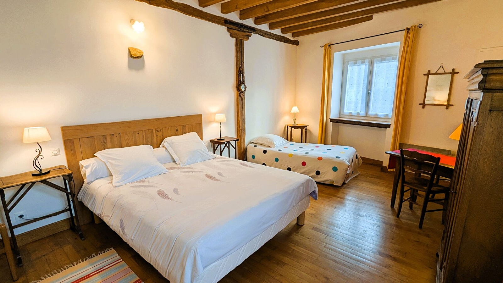 Les vélos peuvent être stockés dans la grange fermée attenante au gîte. 2 places de stationnement dans la cour.