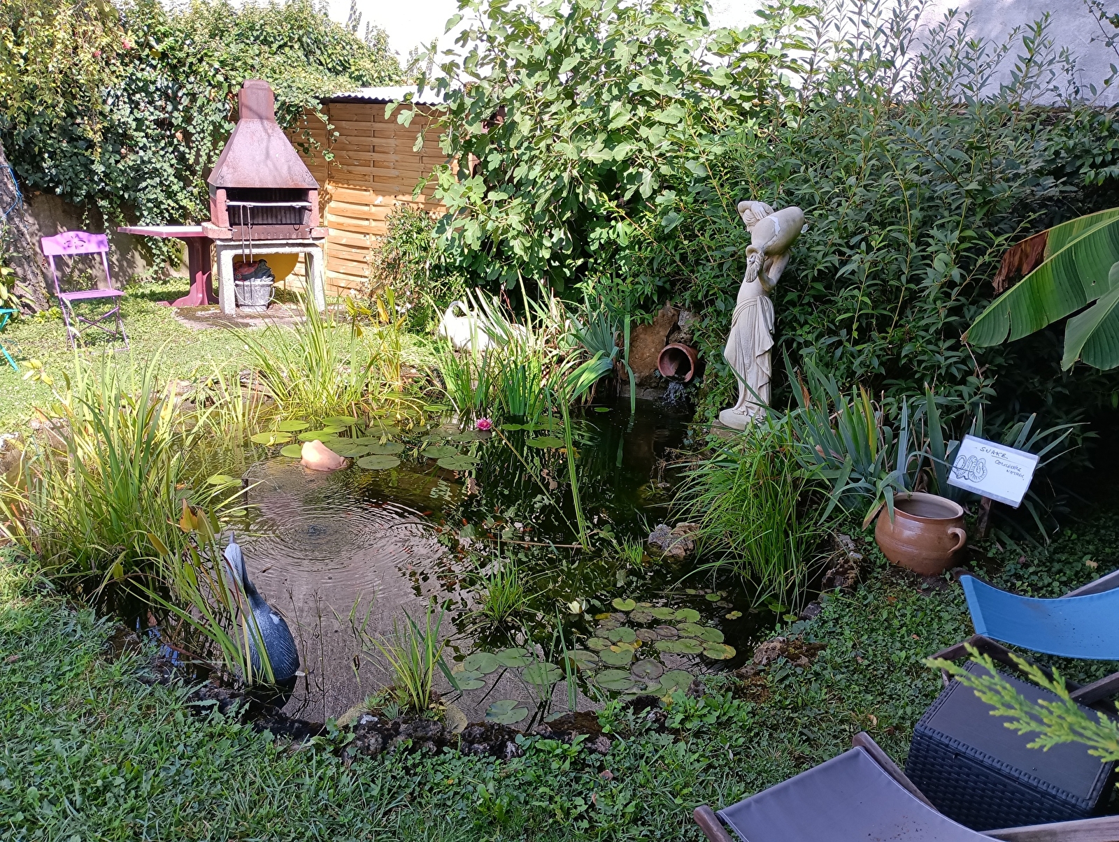 Vous bénéficiez des espaces terrasses avant et couverte sur l'arrière, du bassin, des grenouilles, poissons rouge et plus récemment de la présence d'une belle couleuvre Natrix à collier à observer avec distance et discrétion.