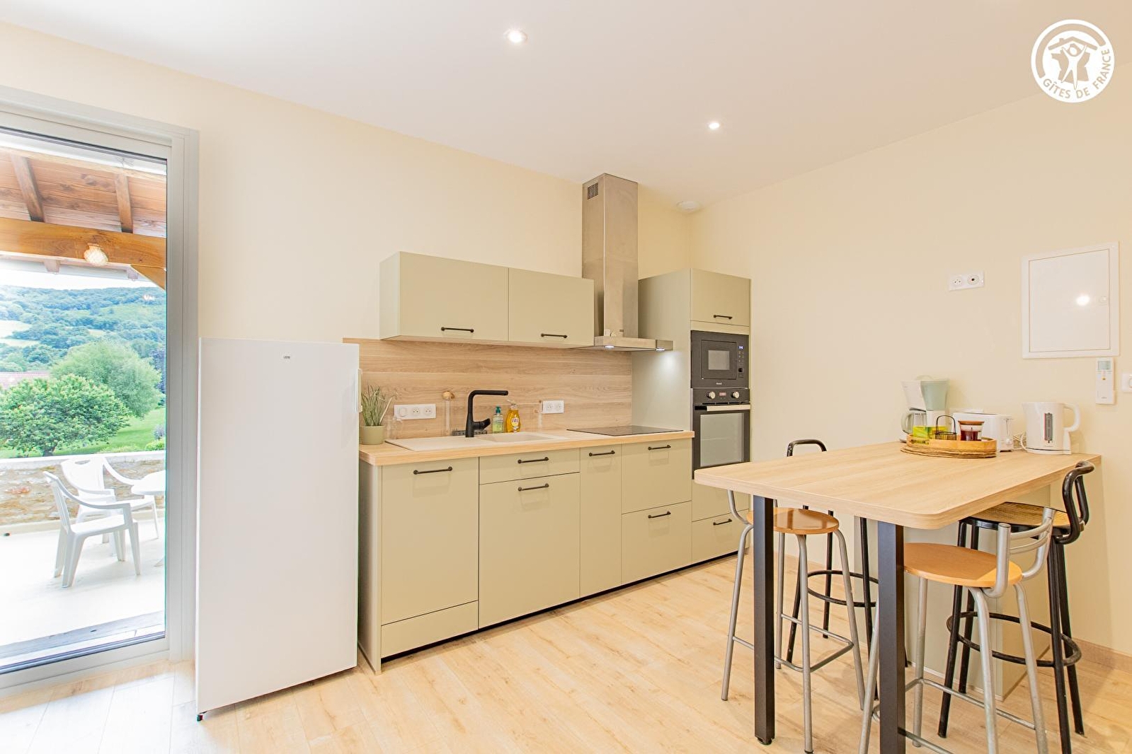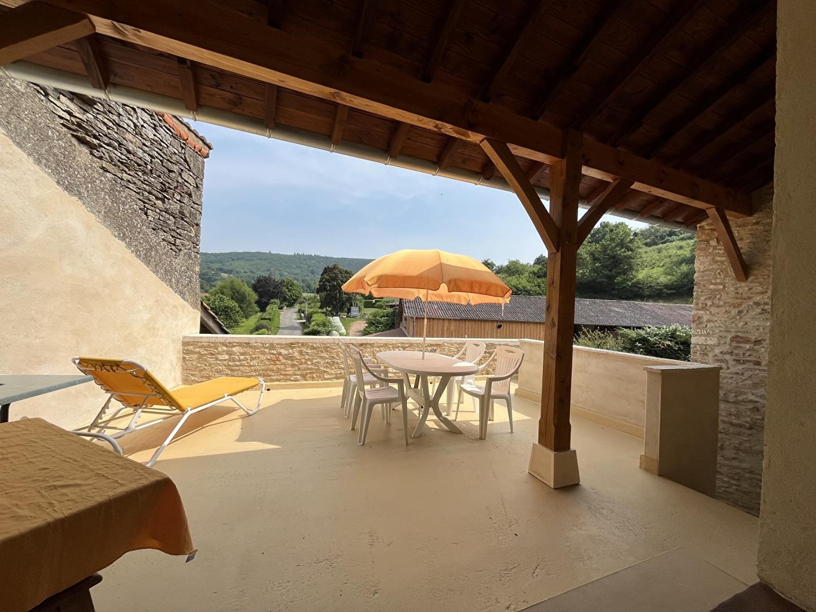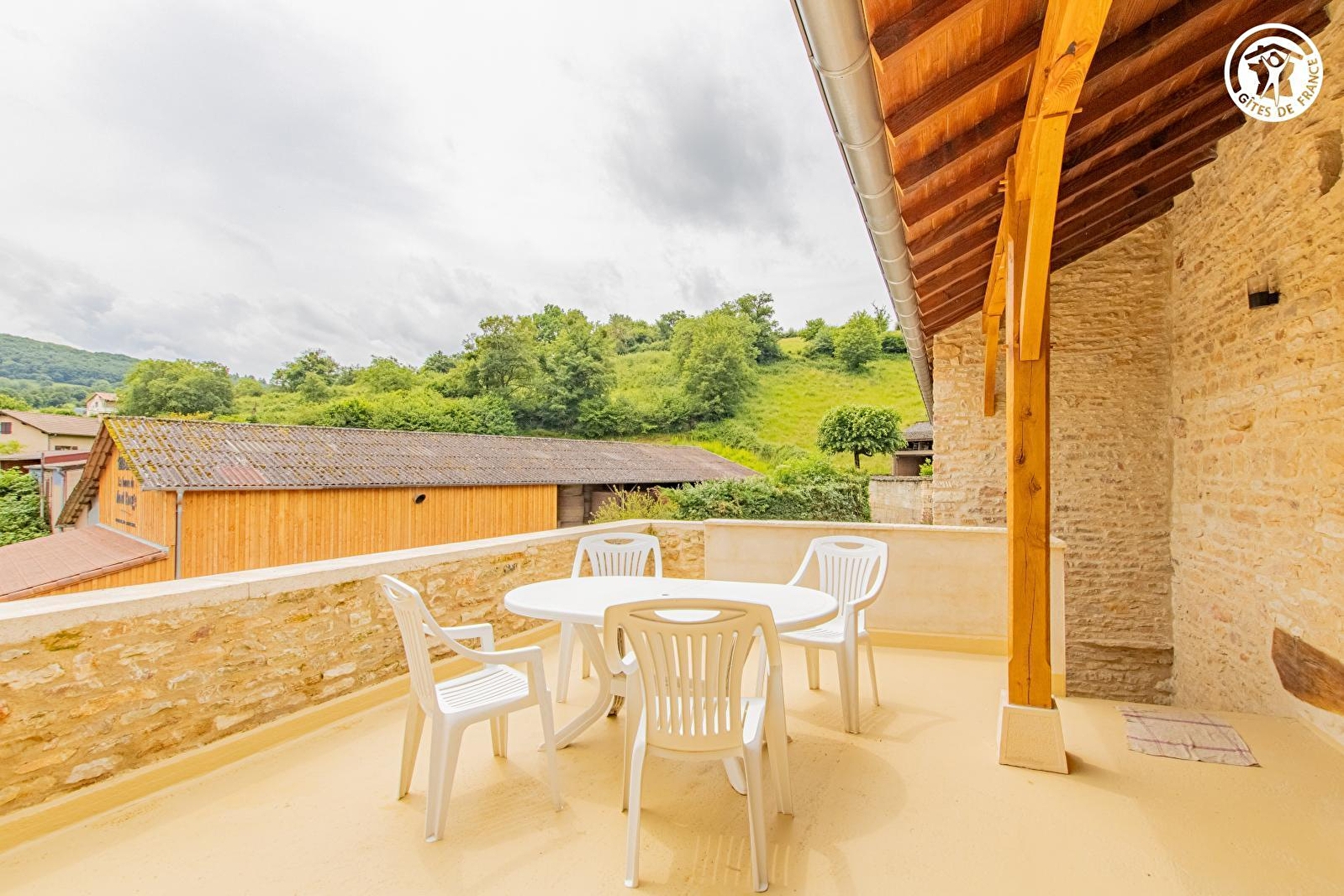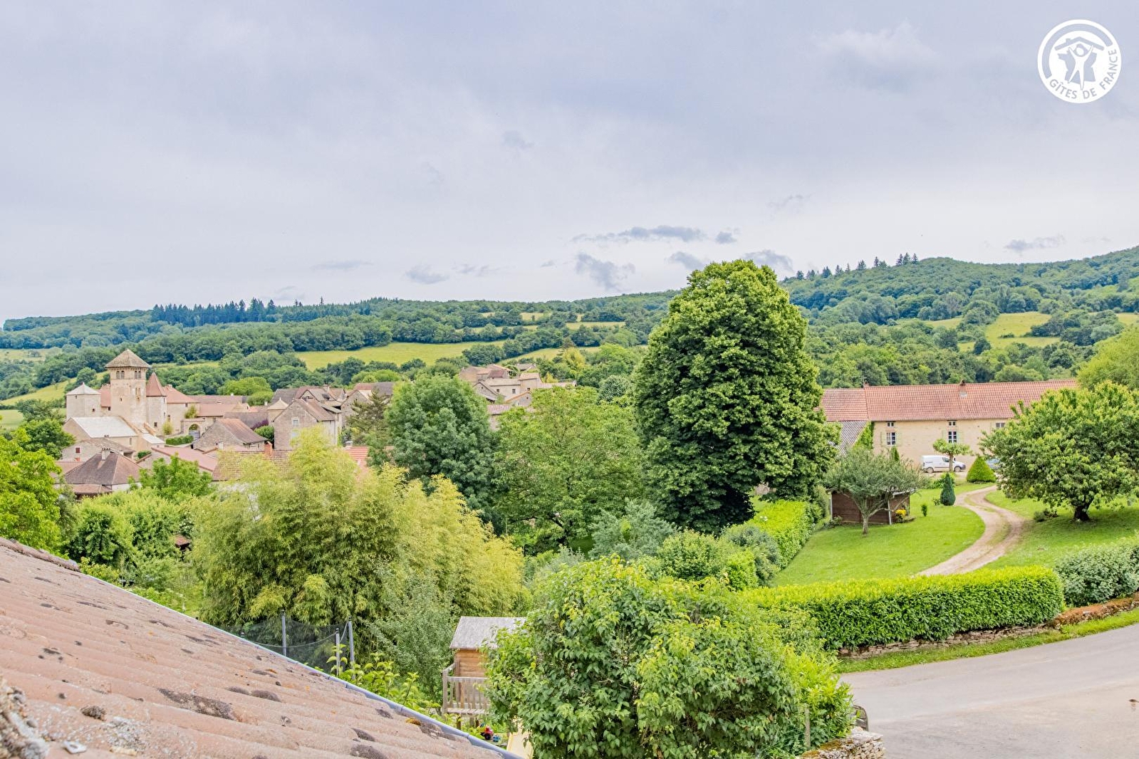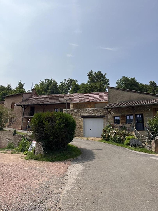 Ravissante authentique ferme bourguignonne typique du XVIIIe soigneusement restaurée (dotée d'une traditionnelle "galerie mâconnaise") adossée à une colline boisée sur un coteau sud-est, nichée au calme en bordure de ruelle (ferme en agriculture biologique sise en face du gîte) à deux pas du cœur d'un paisible petit village typique parfaitement sauvegardé, pétri de charme & chargé d'histoire (haut lieu de la résistance durant la second guerre mondiale). Blotti en pleine douce campagne vallonnée, au creux d'un bucolique vallon, au pied du Mont Saint-Romain (site naturel classé, exceptionnel belvédère culminant à 580m offrant une vue à 360° jusqu'au Mont-Blanc par temps clair & piste de descente VTT réputée), Blanot profite d'un cadre paysagé absolument enchanteur, conjuguant prairies bocagères, belles forêts sauvages & vignobles (en grande partie protégé en "Zone Natura 2000" pour ses richesses faunistiques & floristiques), dispose d'un riche patrimoine (rare Prieuré clunisien du XIIIe, anciens lavoirs, four à pain, demeures historiques réhabilitées à galerie & toits de lave, tombes mérovingiennes des VIe & VIIe etc…) et abrite de réputées "Grottes"(joyau du clunisois, classé en ZNIEFF pour la protection d'espèces rares de chauves-souris). Gîte de très bon confort aménagé en lieu et place de l'ancien "fenil". Chaleureux cachet campagnard contemporain. Ambiance zen & très douce. Enveloppant "cocon" épuré, cosy & douillet. Agréable vaste balcon-terrasse panoramique exposé offrant une très belle vue dégagée sur la campagne & le village où trône son élégante église romane.