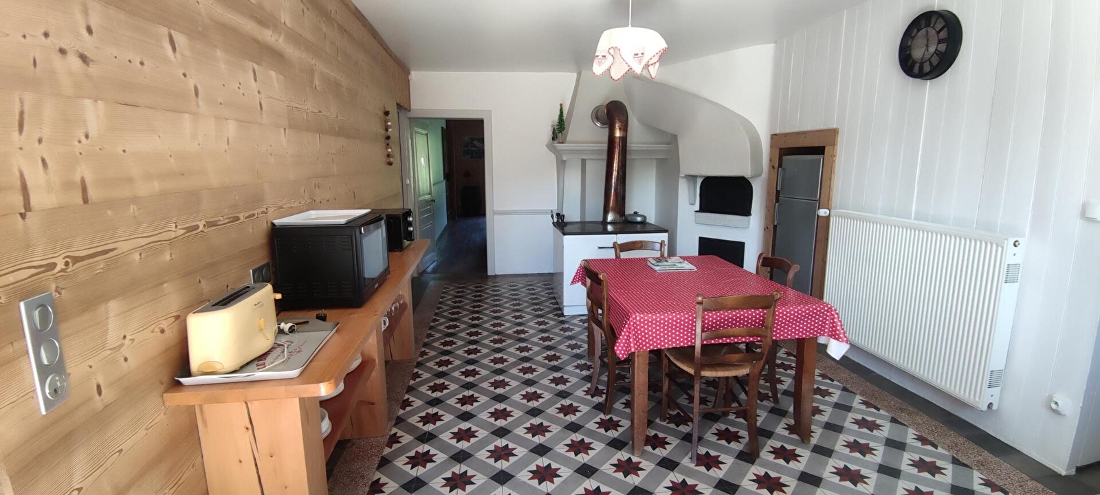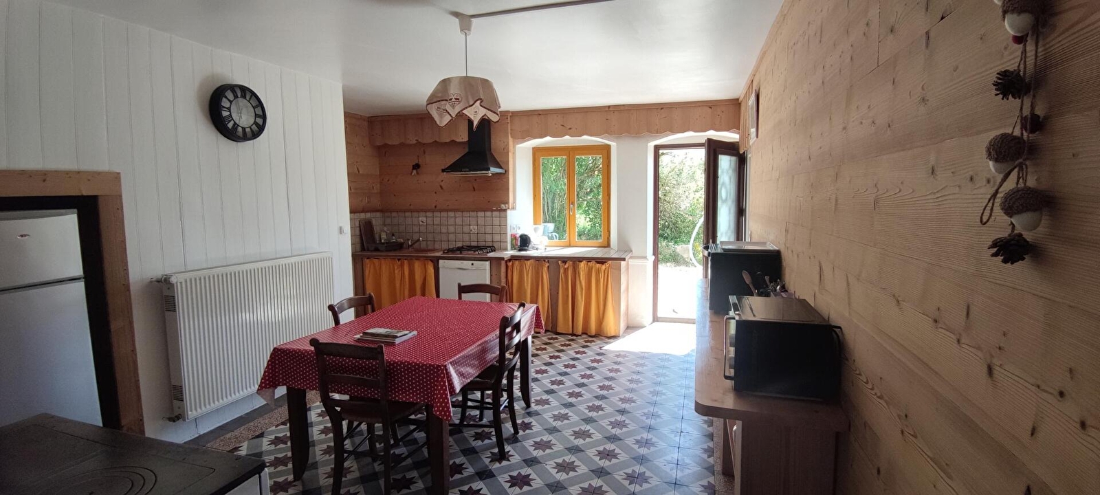 Vous recherchez le charme d'une vieille ferme, du calme pour vous reposer, de l'espace pour les enfants ..et nos amis les animaux, alors vous apprécierez cette ancienne ferme rénovée pouvant accueillir de deux à neuf personnes. Sur un terrain d' un hectare, cette belle maison est le point de départ de vos randonnées avant de vous retrouver pour un bon petit repas devant la cheminée ou un barbecue. Du nord au sud, des vignobles aux stations de ski du haut Jura en passant par la région des lacs et des cascades, chaque visite est une rencontre, un moment inoubliable. Chaque saison offre un décor nouveau, un regard différent sur cette région authentique. Que vous soyez randonneurs, pêcheurs, amoureux de la nature, attirés par la baignade, le VTT ou le ski ou que vous soyez à la recherche d'un patrimoine culturel ou naturel, le Jura vous enchantera. Notre location , de par son implantation géographique, vous garantira un séjour réussi. La petite commune de Saugeot est située au coeur de la région des lacs du Jura, à proximité des Cascades du Hérisson, des lacs et proche des stations de ski du haut Jura. Chèques vacances acceptés. Agencement : Grande cuisine de 20 m² avec cuisinière à bois, plaque cuisson, lave-vaisselle, micro-ondes, mini-four. Séjour de 30 m² avec cheminée et télévision, wifi. Chambre 1 avec un lit 140, un lit de 90, un lit bébé. Chambre 2 avec trois lits de 140. salle de bains avec baignoire, douche et lave-linge, WC indépendant. Appareil à raclette, barbecue, salon de jardin. TARIF pour 6 personnes : 50 euros supplémentaire.