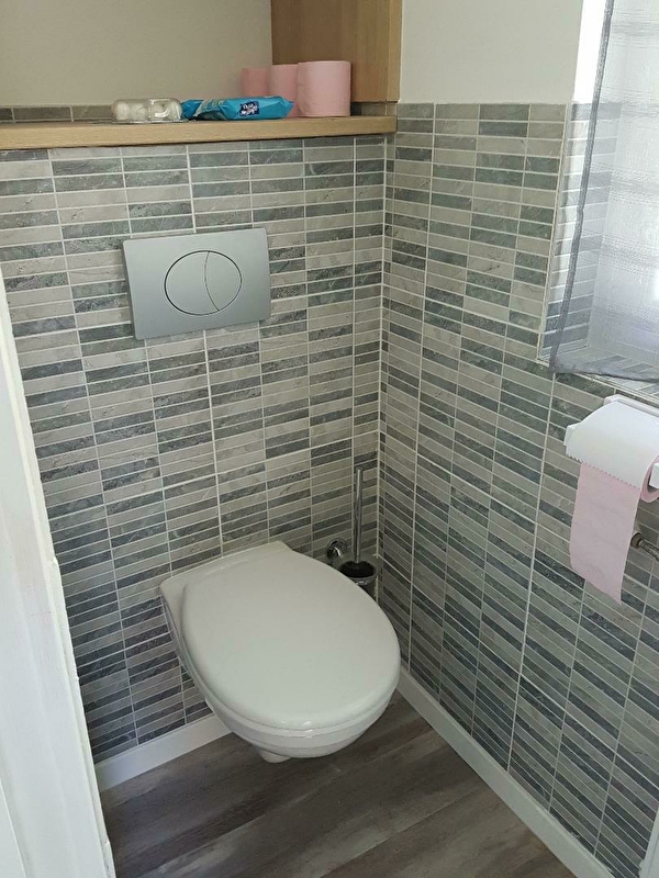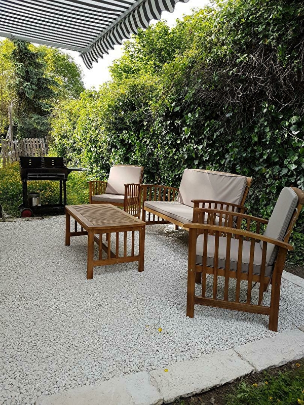 Grâce à la large baie vitrée située dans le salon, le gîte est lumineux et ouvert sur un grand jardin clos. Une terrasse y a été aménagée, avec salon de jardin et barbecue.