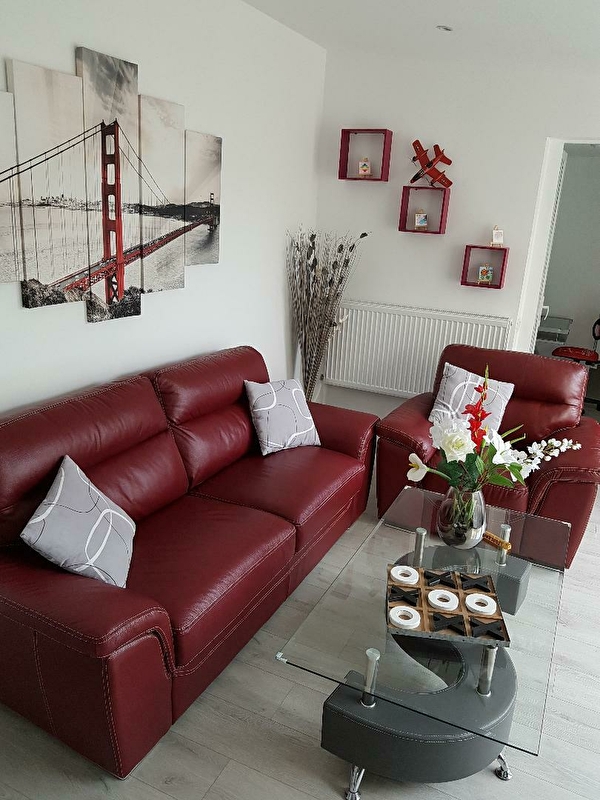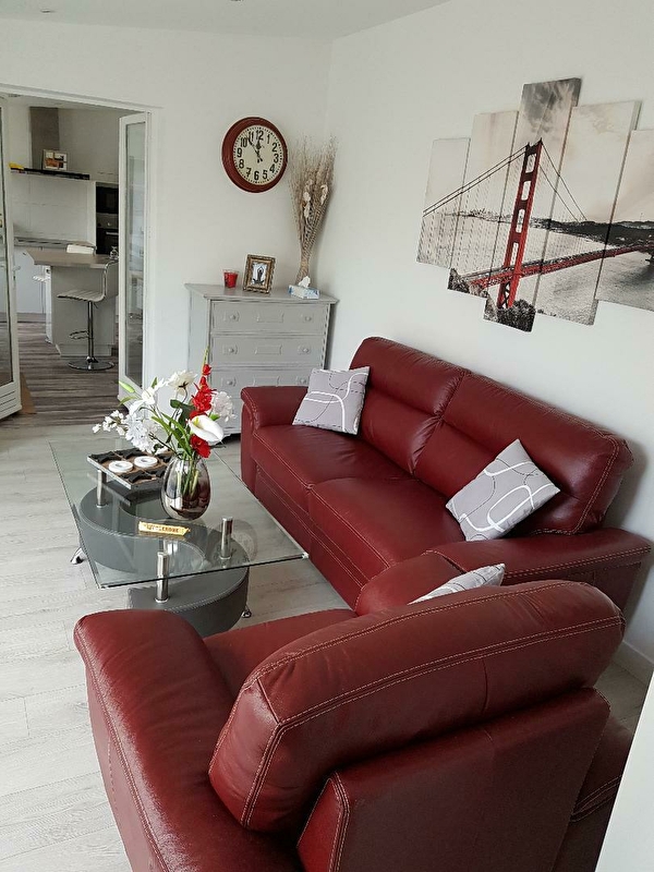 Le logement, attenant à la maison des propriétaires, se compose d'un grand salon (où se trouve un lit d'appoint), d'une cuisine avec îlot central et de nombreux équipements électro-ménagers (lave-vaisselle, four, four micro-ondes, grille-pain, cafetière, bouilloire), d'une salle à manger et d'une chambre avec un lit deux places. La salle de bains dispose d'une baignoire, et les toilettes sont séparées. Vous trouverez également à votre disposition un coin bureau (avec imprimante et écran) et un espace pour le linge (lave-linge, fer et table à repasser). WIFI dans tout le logement.