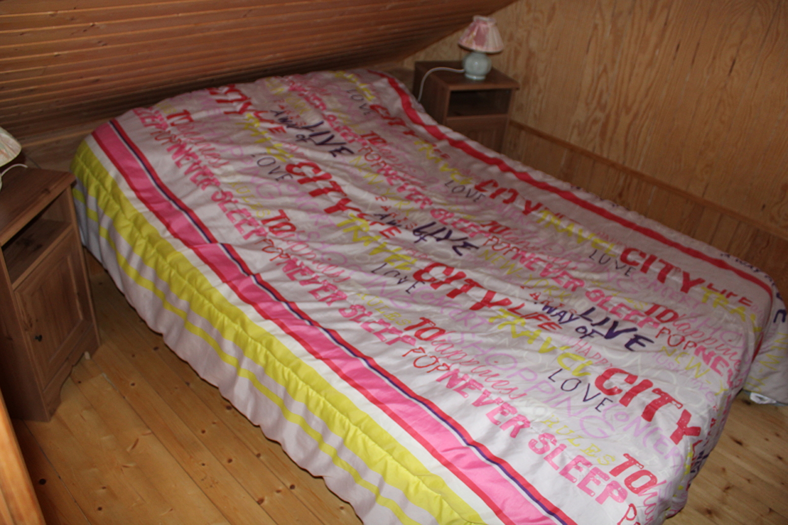 A l'étage : 2 Chambres avec dans l'une 2 lits en 80X200 et dans l'autre une literie en 140 et 1 WC avec lavabo en mezzanine.