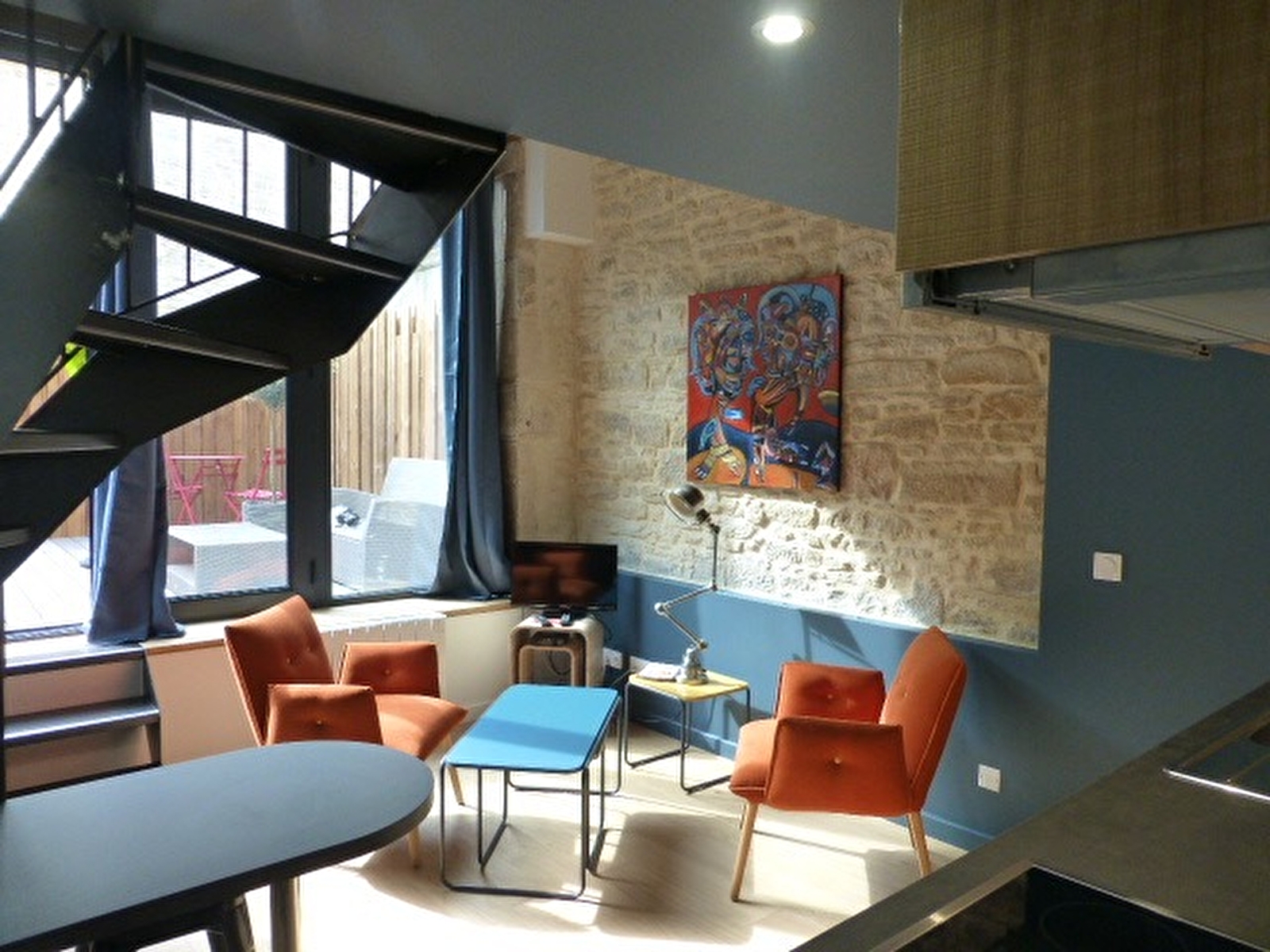 Insolite studio avec mezzanine au calme d'une cour intérieure du centre historique de Dijon. Vous pourrez profiter d'une agréable terrasse privative. Vous êtes à 2 pas des rues piétonnes du centre ville.