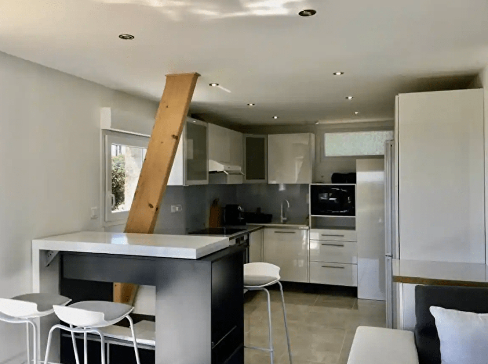 Le logement se compose : chambres, canapés convertibles (dont 1 à l'étage), lit bébé, futon, cuisine équipée et aménagée, salon, sdd/wc, bureau avec nombreux rangements.