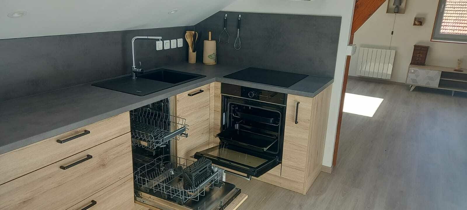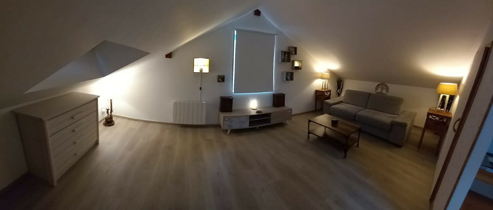 le gîte se compose d'un coin salle à manger, d'une cuisine entièrement équipée ainsi que le petit électroménager, dont l'incontournable appareil à raclette et fondues. d'un grand séjour avec 2 canapés lits (160 et 140), d'une salle d'eau avec douche et WC.