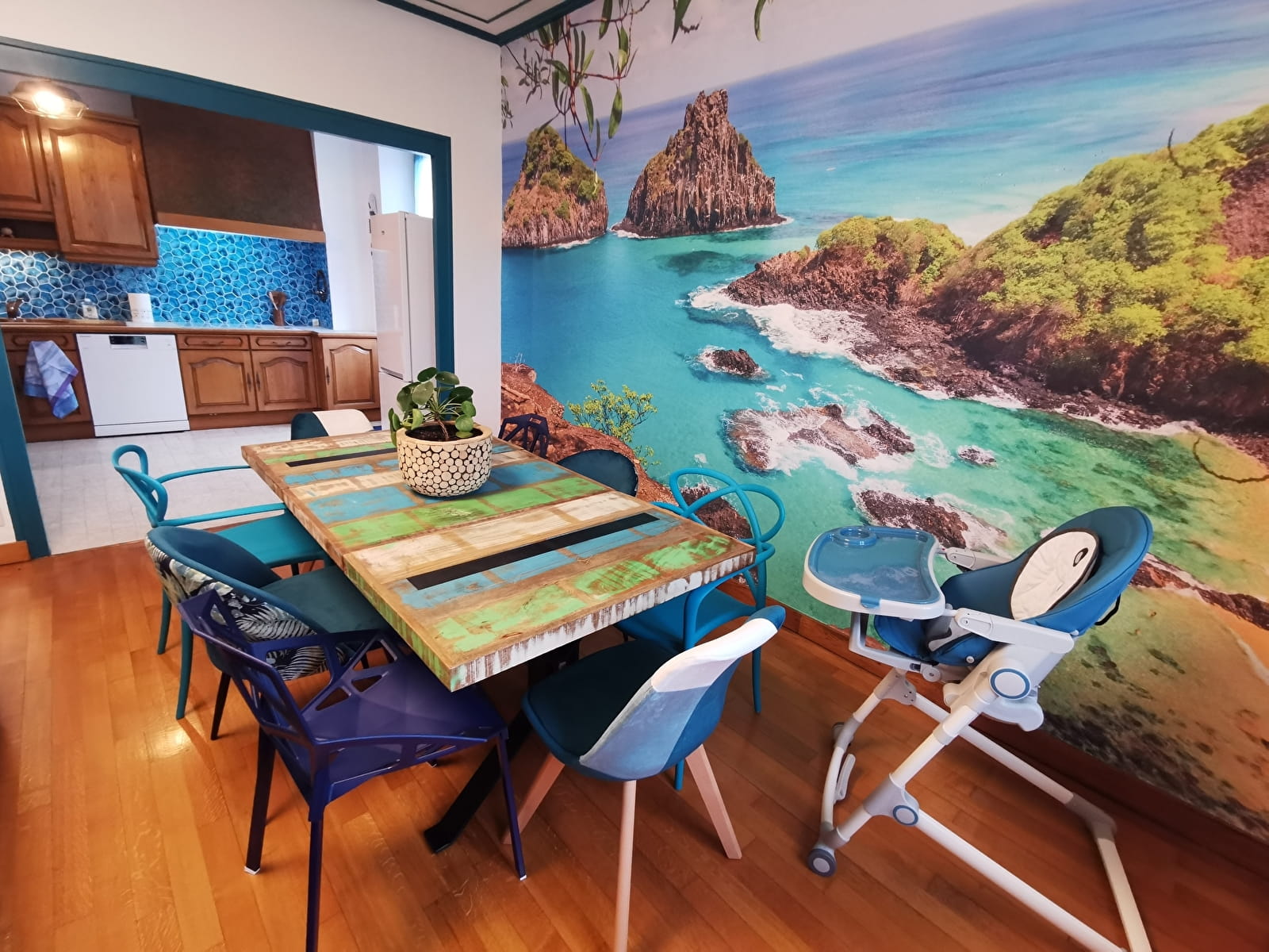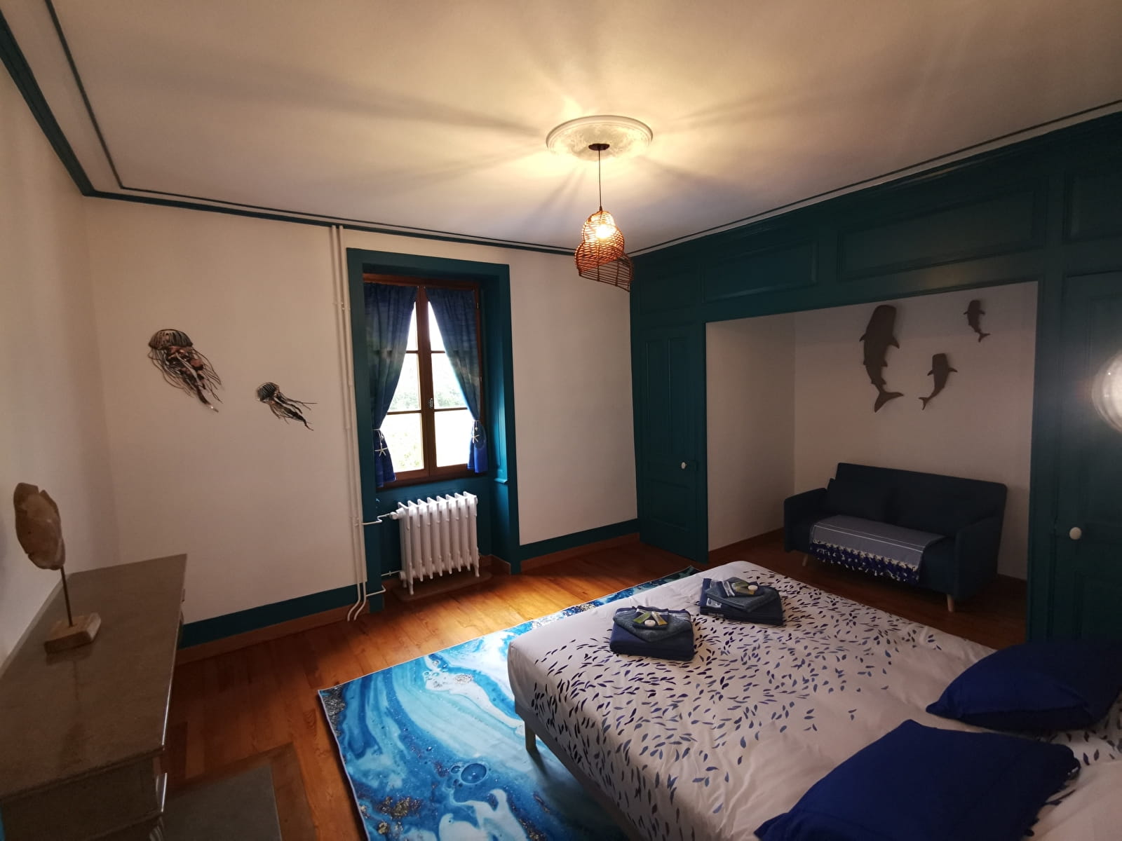 Le thème du logement : Lagon. Une décoration paisible, originale, et tout de bleu vêtue, jusqu'au bout des moulures !