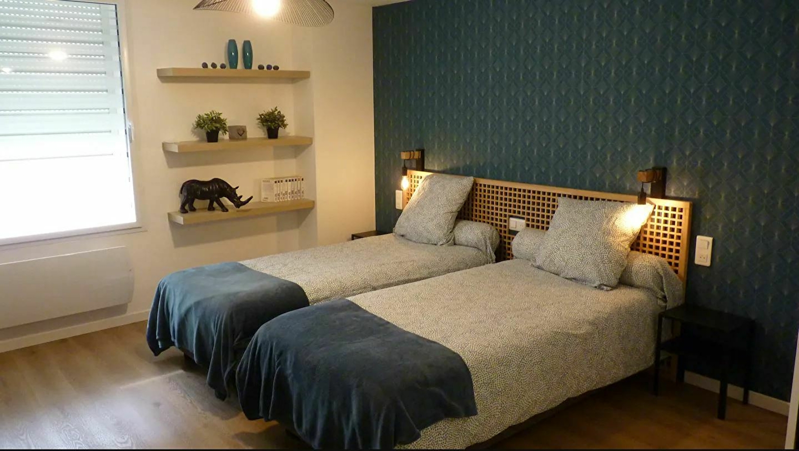 Le logement comprend une chambre avec 2 lits 90 pouvant être regroupés, un grand placard et une salle d'eau attenante.