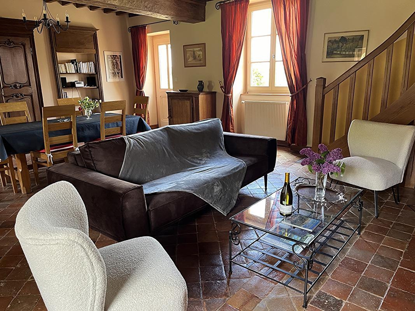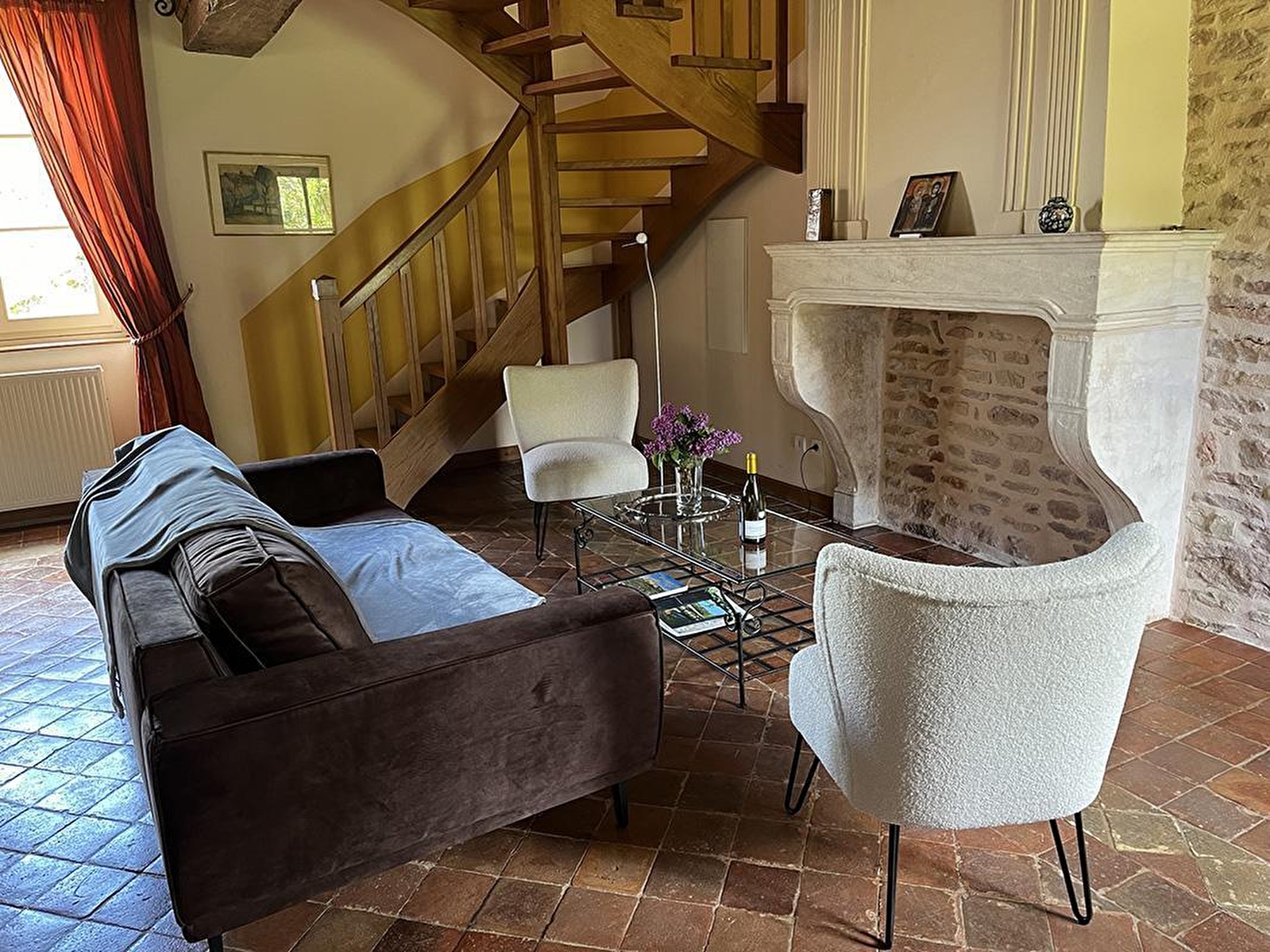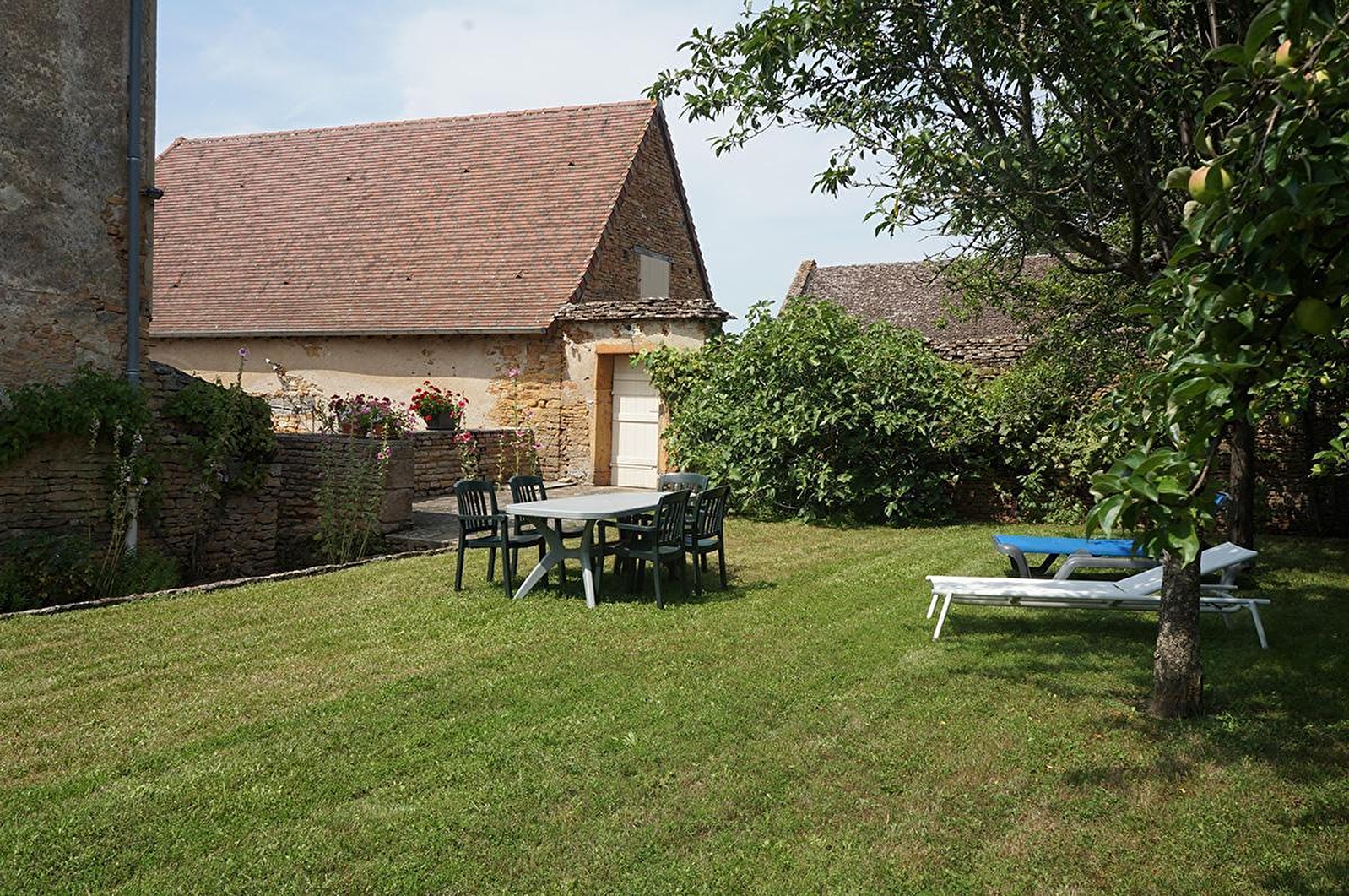 Belge d'origine & bourguignonne d'adoption, France vous ouvre les portes d'un authentique presbytère de caractère du 17ème siècle pétri d'histoire & soigneusement restauré dans les règles de l'art (lié jadis à la majestueuse église romane classée du XIe trônant face au gîte), blotti à flanc de coteau sud-ouest exposé, sur les hauteurs du paisible village d'Ameugny. Lové « en balcon » sur une colline dominant la bucolique vallée verdoyante de la Grosne & le superbe bocage clunisois, à deux pas des premiers vignobles et toute proximité des contreforts boisés du massif sud-Bourgogne, ce pittoresque petit village typique du haut Mâconnais, calme & tranquille, dispose d'un riche patrimoine (église romane, maisons vigneronnes traditionnelles avec galeries mâconnaises, lavoirs, fontaines…) & d'un cadre paysagé vallonné de toute beauté, succession de prairies, vignobles, étangs, bocages & forêts. Spacieux gîte de bon confort. Vaste pièce de vie (beau volume). Chaleureux cachet campagnard d'esprit « bourgeois » raffiné, sublimé par une restauration patrimoniale soignée (linteaux en pierres, élégant manteau de cheminée, plafond à la française, poutres & charpente, murs en pierres, tomettes… d'origine). Beaucoup de charme & de caractère. Très cosy. Ravissant jardin clos végétalisé & arboré (pruniers, pommiers, poiriers, figuier, framboisiers…), spacieux & intimiste, niché à l'abri des regards derrières d'historiques murs d'enceinte en pierres sèches (doté d'une notable porte d'accès multiséculaire « classée »). Large terrasse exposée offrant un splendide panorama sur la campagne & monts environnants.