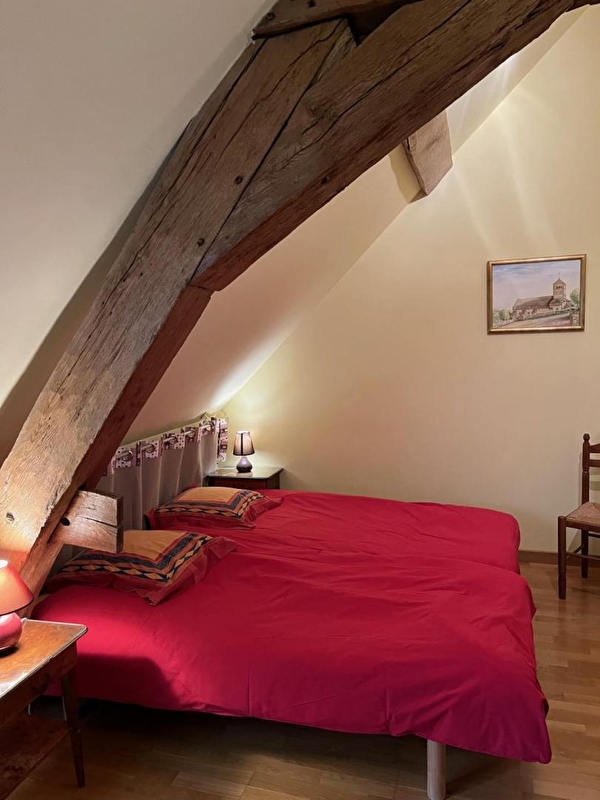 Composition : Gîte mitoyen à l'habitation des propriétaires (indépendance totale). Wifi. Chauffage central fioul. Rdc : cuisine, séjour-salon. 1er étage : salon TV sur pallier, 2 chambres (lit 2 p. 160x200cm / 2 lits 1 p. 90x200cm), salle de bain (baignoire), Wc indépendant. Jardin clos + terrasse privés. Local vélos. Parking public aisé devant le gîte. Commodités 2.5 km.