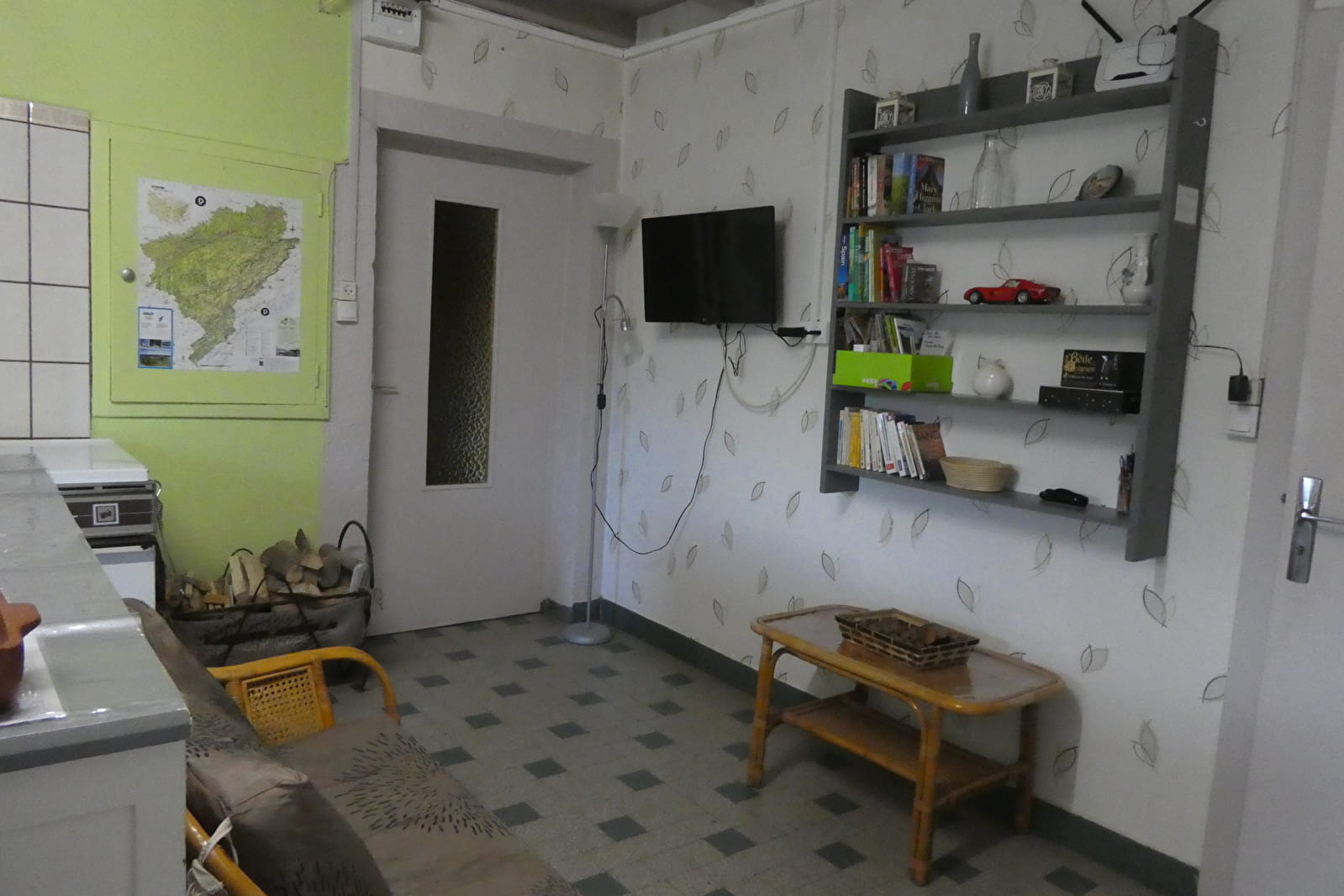 -1 coin salon avec 1 canapé, 1 fauteuil, 1 télévision