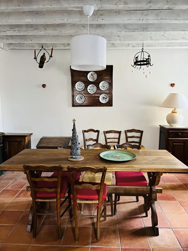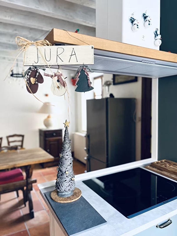 Cette ancienne cure a su garder ses atours: elle offre différents espaces à investir, cour intérieure terrasse, jardin clos et ombragé, salon, bibliothèque, chacun trouvera sa place.D'une capacité d'accueil de 8 personnes ce gîte offre une belle surface habitable d'environ 175 m² ,composée d'une cuisine toute équipée avec plafond à la française, d'un séjour-salle à manger avec boiseries et cheminée donnant sur une terrasse, d'un salon-bibliothèque, d'une salle de bain en rez-de-chaussée et d'un WC indépendant. A l'étage, une deuxième salle de bain avec WC, et 4 chambres avec vue sur le jardin et le joli terrain arboré d'environ 1200m² . Les quatre chambres situées à l'étage , donnent sur le jardin : la chambre des Hirondelles comprend un lit double (140*190) et un 1 lit simple (90*190), elle est attenante à la salle de bains avec WC de l'étage , la chambre des Moineaux comprend 2 lits simples jumelables 90*190, la chambre de la Chouette et celle du Chardonneret ont un lit double 160*200. Pour votre plus grand confort, les draps sont fournis. Côté extérieur, vous pourrez profiter de la quiétude des lieux sur la terrasse équipée d'un salon de jardin, d'un barbecue et de transats. Idéalement situé, à 5 mns de Poligny, capitale du Comté où vous trouverez tous les commerces et également la Maison du Comté pour découvrir les secrets de la fabrication de ce célèbre fromage. Autres loisirs à proximité : baignade ( piscine de Poligny et lacs), œnologie et découverte des vins du jura. Parking sur place et à proximité immédiate et volets dans les chambres.