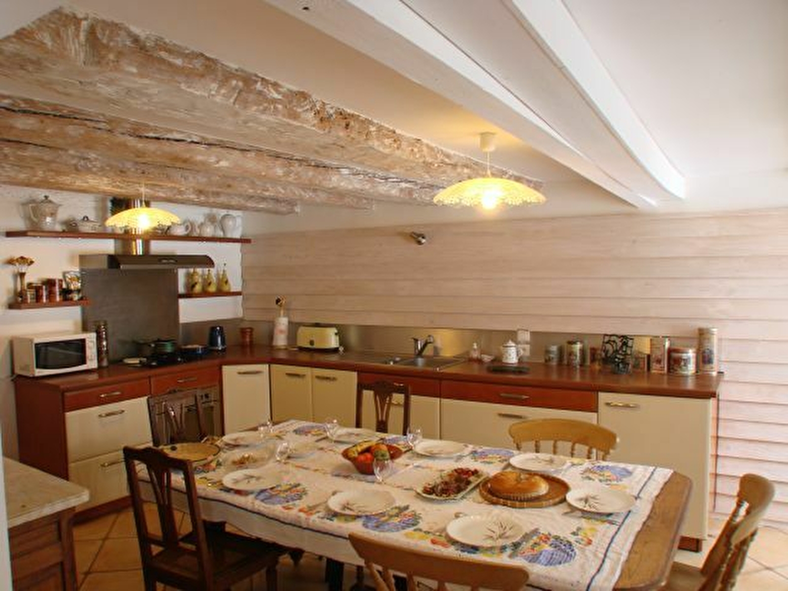 Avant tout de l'espace, 122 m2 habitables agencée pour 6 personnes seulement, et du calme. Un salon de lecture près de la cheminée, une vaste cuisine pour un dîner entre amis, deux chambres à l'étage spacieuses orientées à l'est avec le soleil du matin.