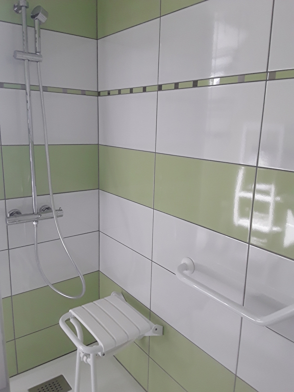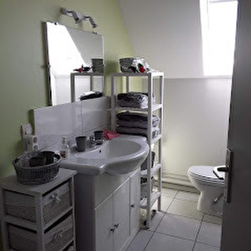 A l'étage, une chambre un grand lit électrique ( 160),dressing, bureau et lit bébé et une autre chambre avec 2 lits électriques (90) et lit d'appoint avec armoire et bureau. Salle de Bain avec douche et Wc.
