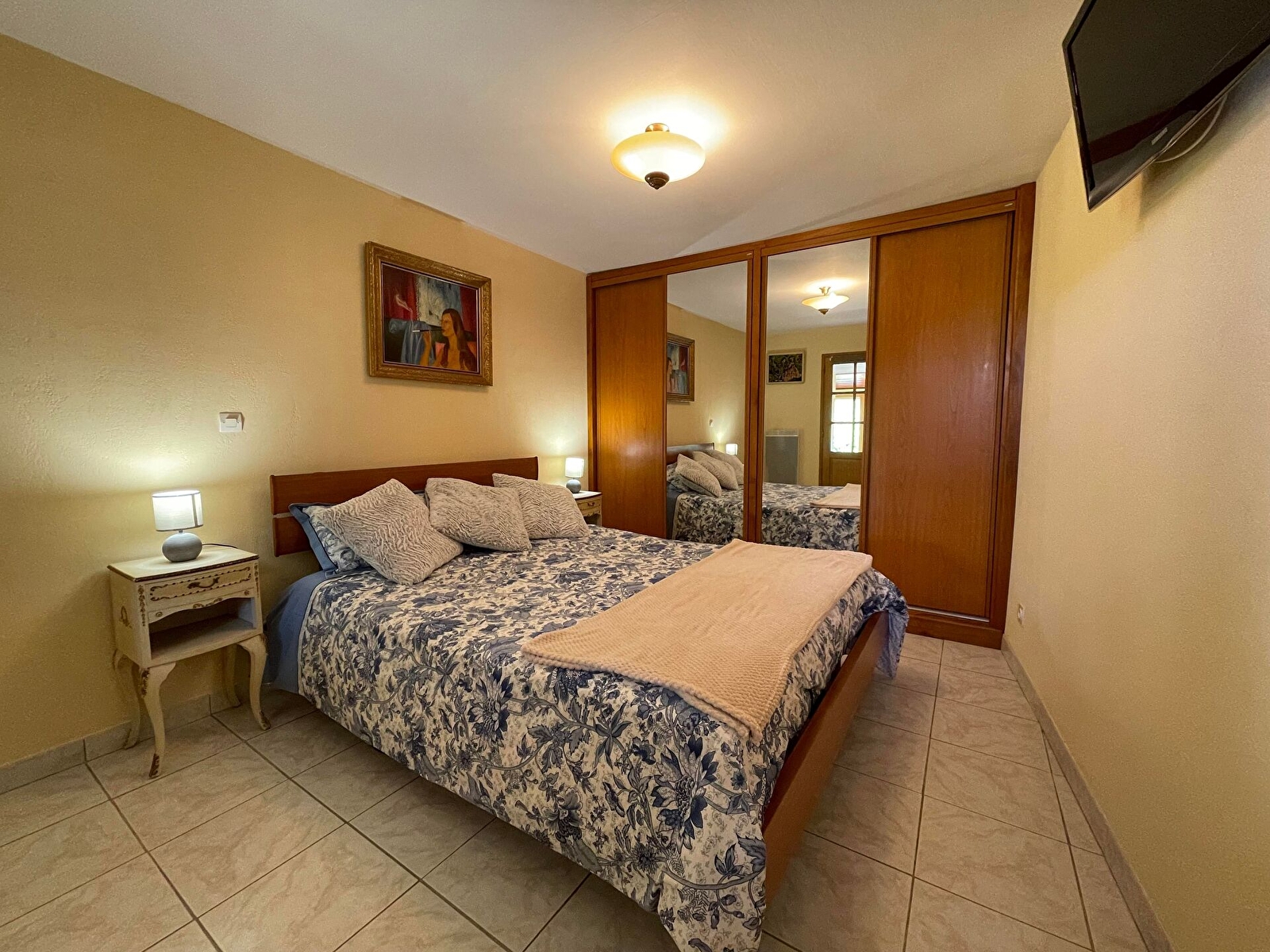 Vous accédez par une grande entrée avec nombreux rangements et lave linge à la véranda qui donne sur le jardin clos et végétalisé. Une première chambre avec grands placards, TV et lit de 160x200 est accessible depuis la véranda.