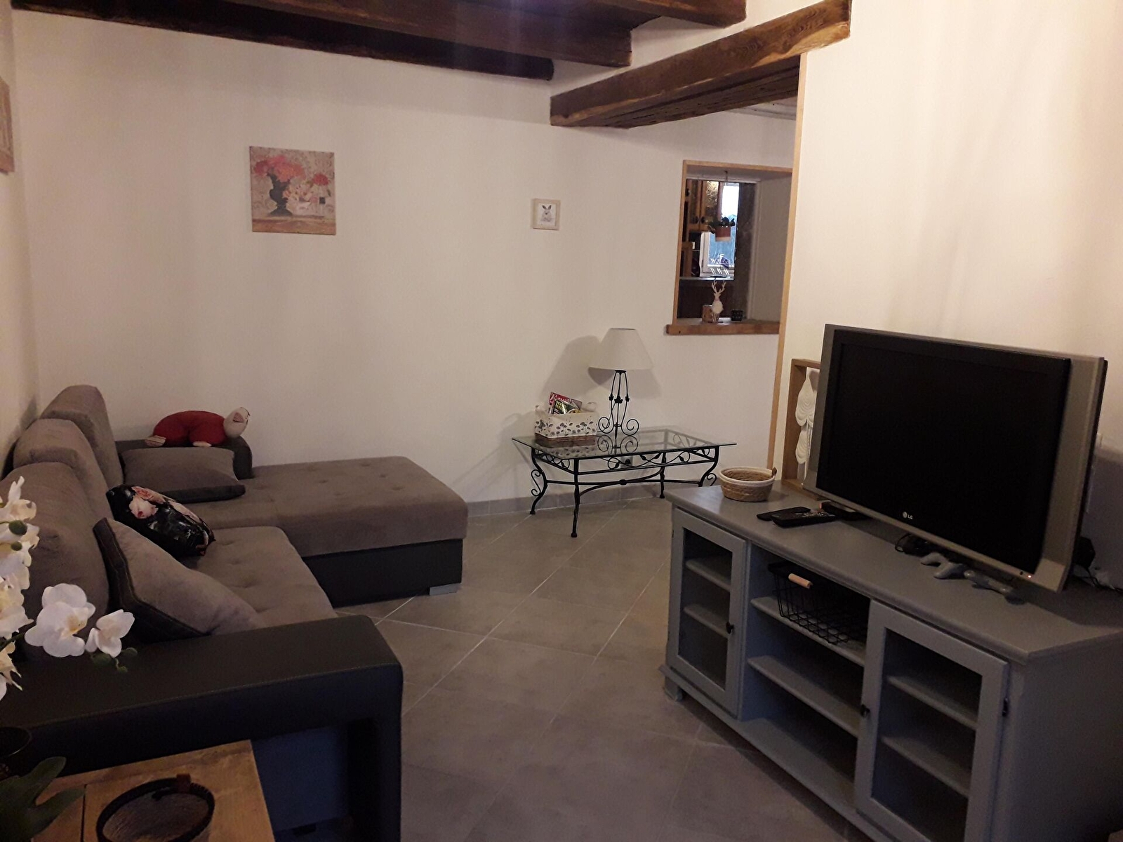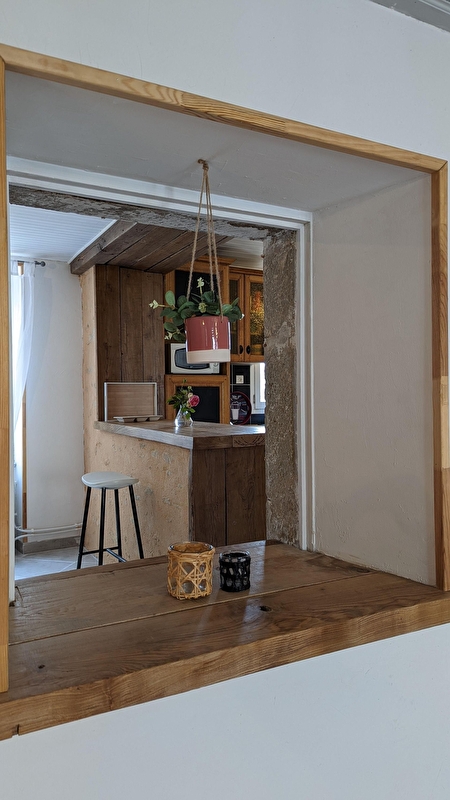 En rez de jardin, grande pièce de vie conviviale avec salon/salle à manger et cuisine équipée ouverte. Cheminée. Salle d’eau avec douche et WC séparés.
