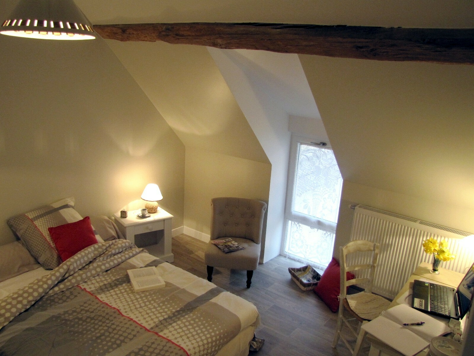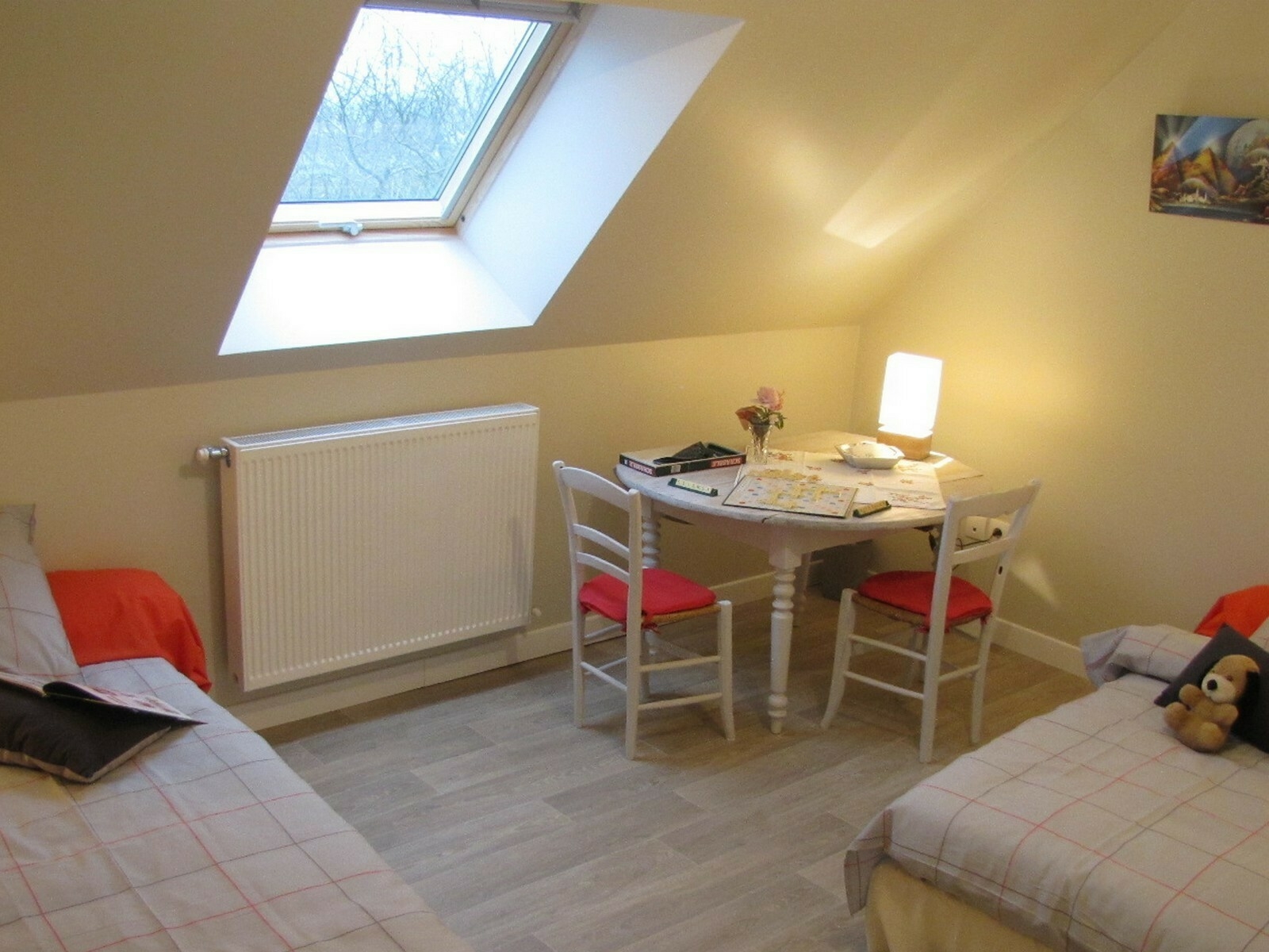 A l'étage : chambre "Mésange bleue" lit 160, chambre "Hirondelle" lit 140, chambre "Rouge-gorge" 1 canapé clic-clac en 140 + 2 lits de 90 (possibilité de rajouter un lit en 90 dans une des chambres), salle d'eau, WC indépendant.