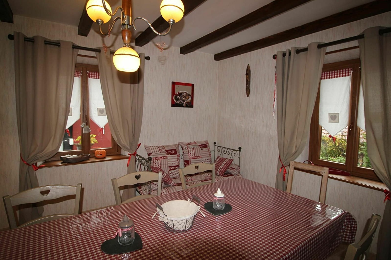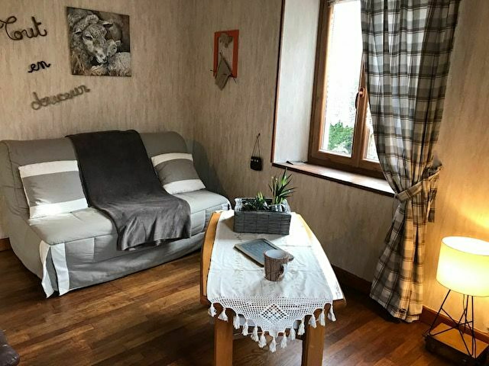 La maison est idéale pour 4 personnes avec possibilité de couchages supplémentaires pour 2 personnes (lits faits à l'arrivée sur demande en sus:), le gîte dispose d'un accès indépendant, de places de stationnement, d'un garage, d'une terrasse avec salon de jardin, et d'un vaste verger classé Refuge LPO, agrémenté d'un cabanon. Au rez de chaussée: cuisine équipée, séjour, salon avec TV écran plat, lecteur DVD, toilettes. A l'étage: dégagement, 1 chambre avec un lit de 160x200, 1 chambre avec 2 lits de 90x190, 1 salle d'eau avec lavabo, douche et wc.. Chauffage d'octobre à mai 45€/semaine. Que vous soyez amateurs d'activités sportives de pleine nature ou de découverte du patrimoine historique et culturel, la région vous séduira et les propriétaires ravies de vous accueillir.