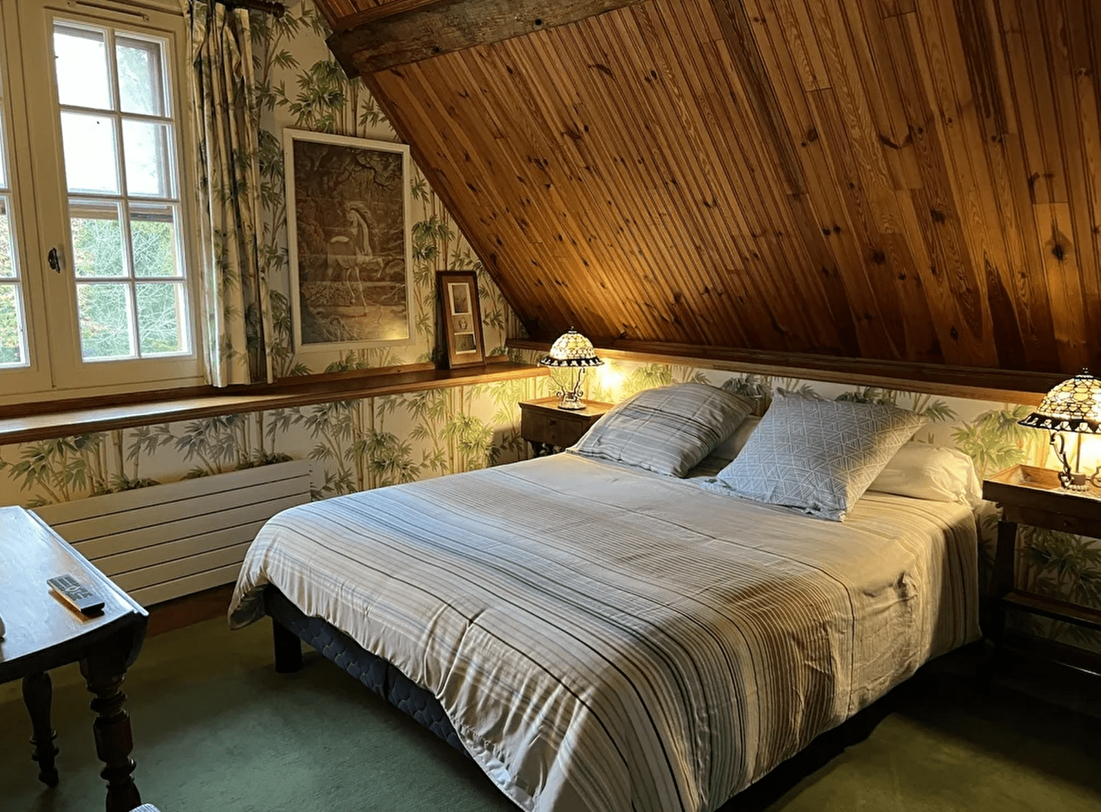 Ici, tout a été pensé pour votre bien-être : chambres spacieuses au charme bucolique, cheminée, coin lecture aménagé sur la mezzanine, jeux de société, repas sur la terrasse, barbecue dans le jardin, cabanes pour enfants, partie de pétanque, ou encore promenade dans notre forêt privée, autour de l’étang.
