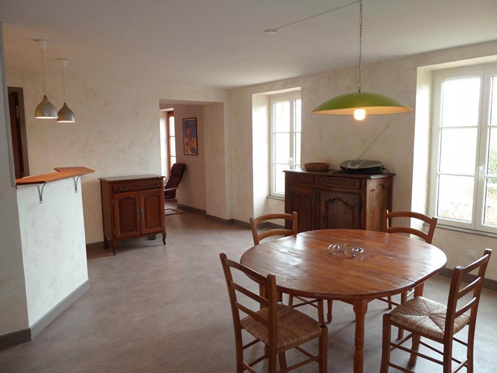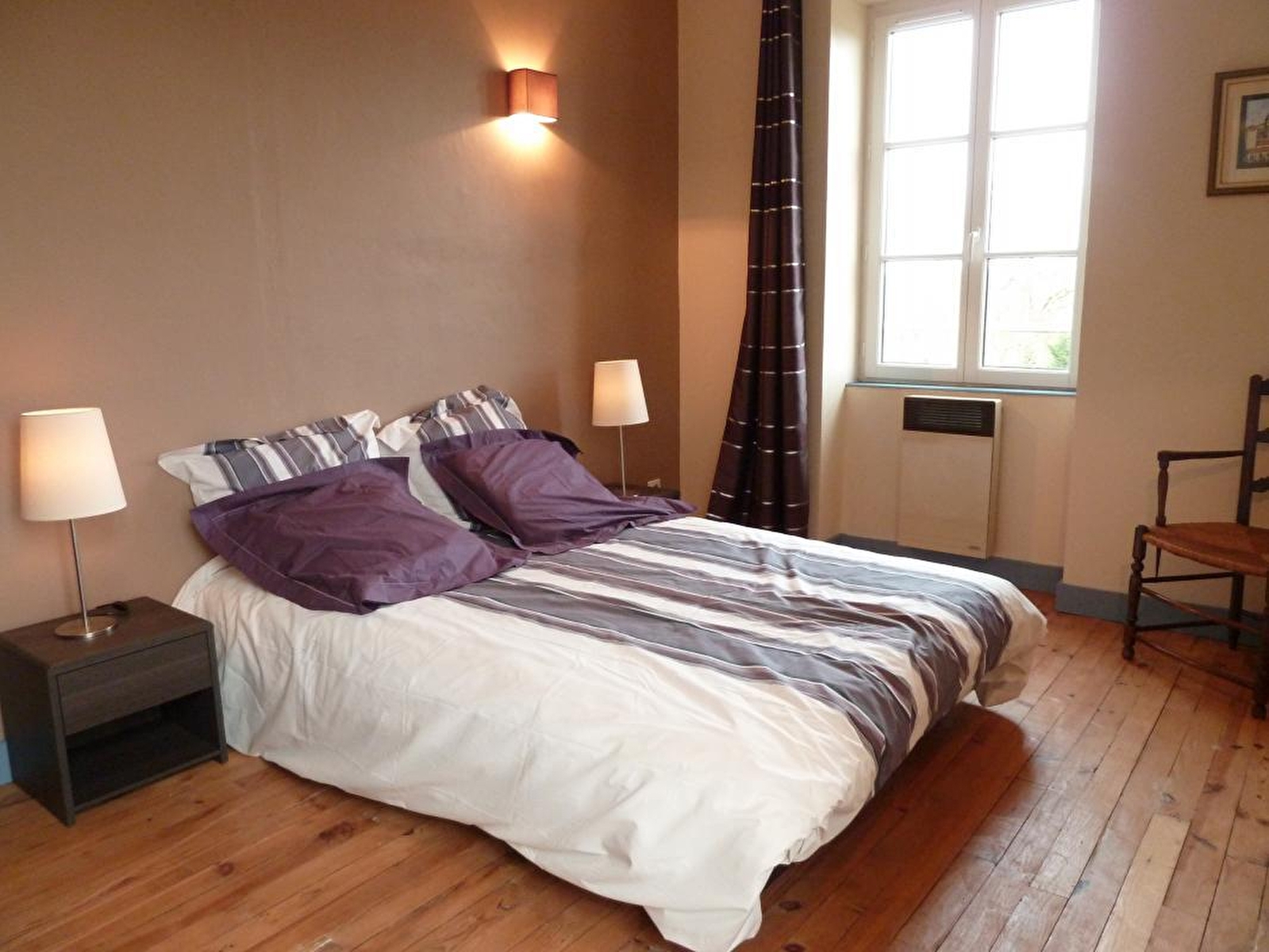 Composition : Gîte mitoyen à l'habitation des propriétaires (totale indépendance). Wifi (fibre). Chauffage électrique (mixte de radiateurs & plancher chauffant). Gîte en duplex sur 2 niveaux (accès par un escalier extérieur). 1er étage : séjour-cuisine, salon (canapé convertible 2 p. 140x190cm), salle d'eau (douche), WC indépendant. 2ème étage : 2 chambres (lit 2 p. 140x190cm / 2 lits 1 p. 90x190cm). Cour close + terrasse + parking privés. Local vélos privatifs. Supermarché à 6 km. Petits commerces (dont supérette) à 10.5 km. Toutes commodités à 11 km.
