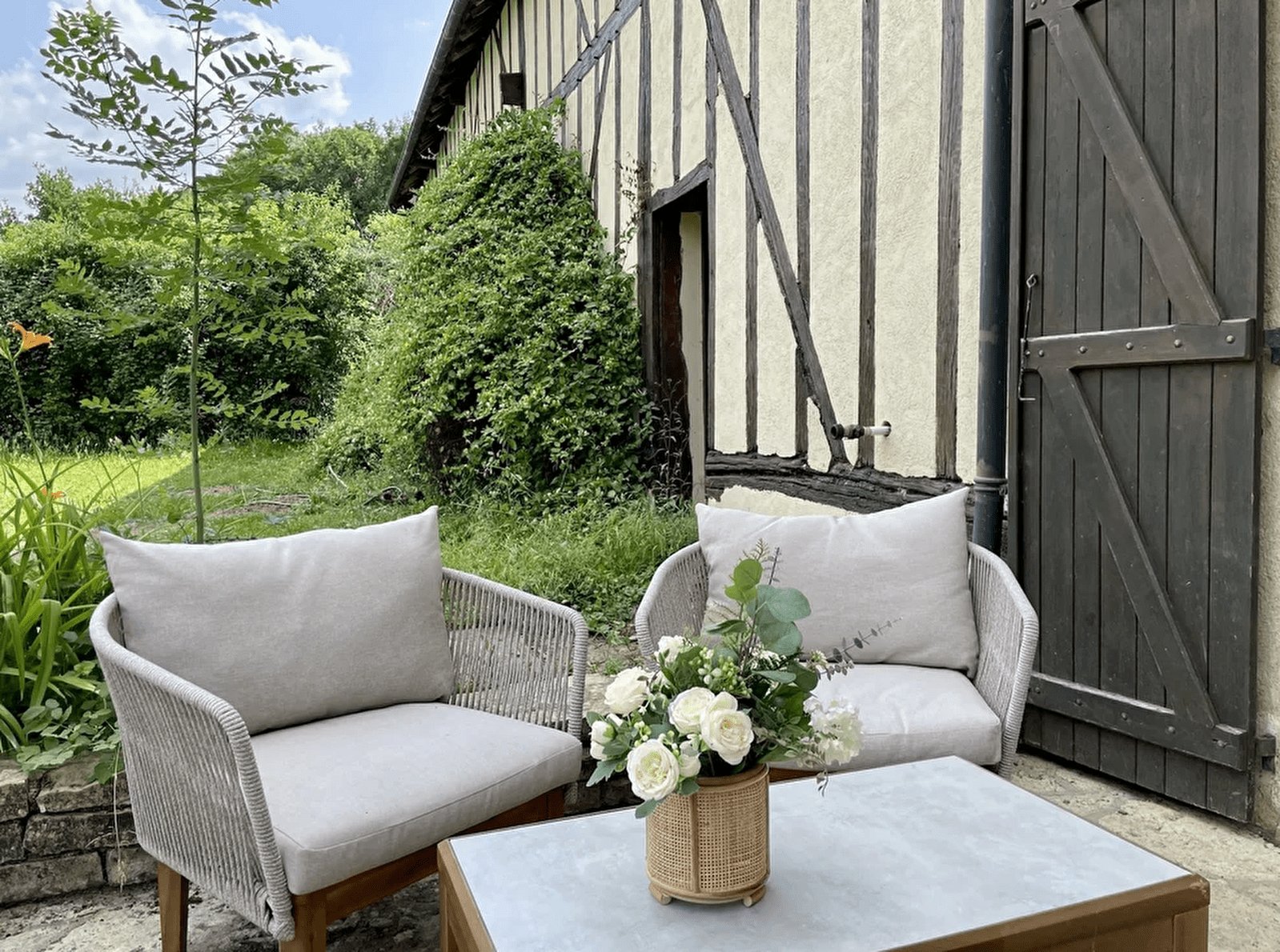 Situé à Rogny-les-Sept-Écluses, à la frontière de l’Yonne et du Loiret, le gîte de la Boursicauderie est un ancien corps de ferme à colombages, entièrement rénové.