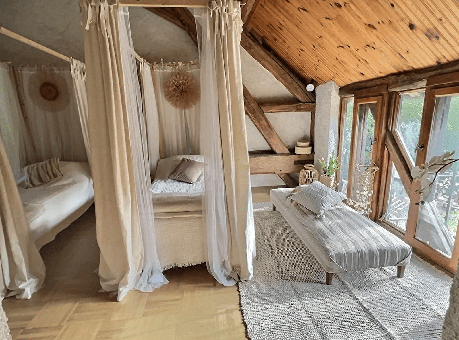 Ici, tout a été pensé pour votre bien-être : chambres spacieuses au charme bucolique, cheminée, coin lecture aménagé sur la mezzanine, jeux de société, repas sur la terrasse, barbecue dans le jardin, cabanes pour enfants, partie de pétanque, ou encore promenade dans notre forêt privée, autour de l’étang.