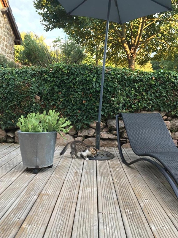 Composition : Maison individuelle. Wifi. Chauffage électrique + poêle à bois. Rdc : séjour-cuisine-salon, Wc indépendant. Demi-niveau : 1 chambre (lit 2 p. 140x190cm) avec salle d‘eau privative "ouverte" (douche à l’italienne), buanderie. 1er étage : 2 chambres (chacune avec 2 lits 1 p. 90x190cm), coin nuit bébé, espace détente & salle de jeux, sdb (baignoire/Wc). Terrasse + jardin + cour + local vélos + parking privatifs. Commerces 6.5 km. Supermarché 9 km.
