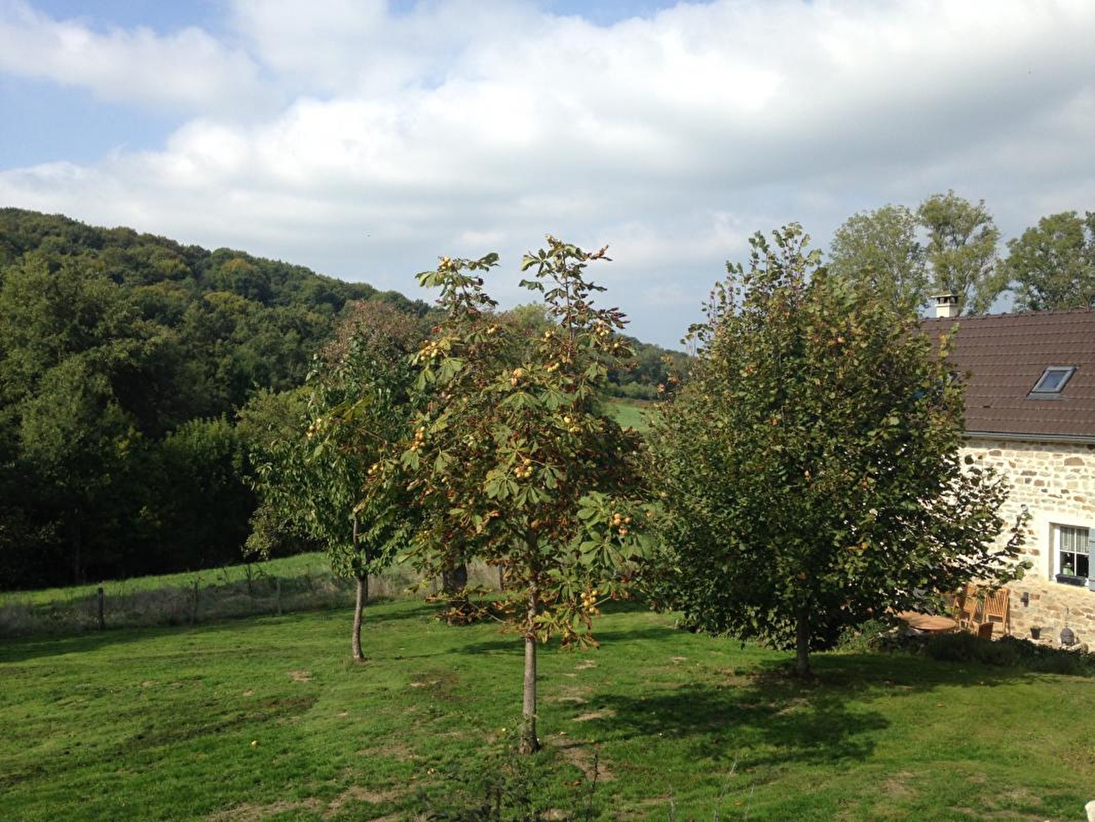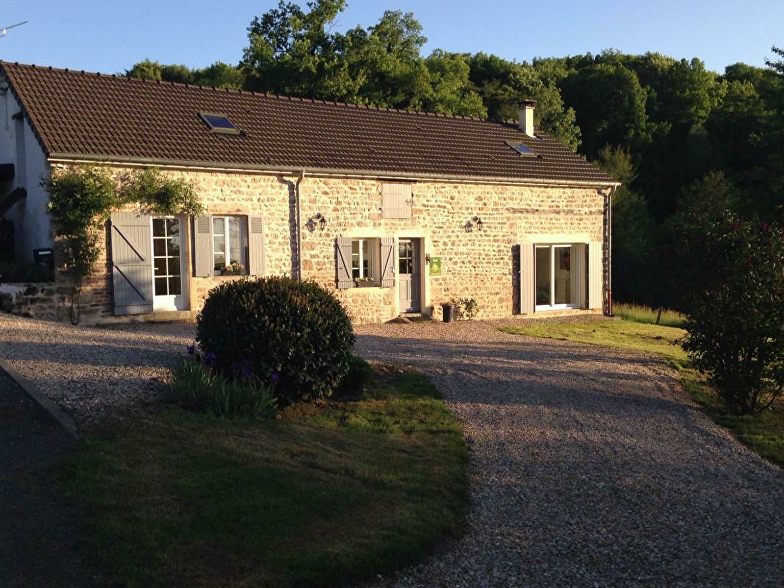 Authentique fermette traditionnelle de caractère du XIXème (anciennes étables en longère) soigneusement restaurée dans les règles de l’art, blottie en "belvédère" exposé sur une petite colline, en lisière de prairies à l’orée d’une vaste forêt sauvage (à découvrir à pied ou VTT), au creux d’un bucolique vallon abritant un petit étang (où nichent des canards sauvages). Magnifique écrin de nature & verdure. Littéral havre de paix & repos. Possibilité d’observer la faune sauvage sur place (biches, chevreuils, sangliers, renards…). Calme & totale tranquillité, niché en impasse au sein d’un paisible mini hameau rural, en pleine campagne charolaise vallonnée & son sublime bocage boisé, proche d’un étang de pêche réputé de 40 ha (Étang du Grand Baronnet), au cœur d’un magnifique environnement sauvegardé en large partie protégé en ZNIEFF & "Zone Natura 2000"pour ses richesses faunistiques & floristiques dont la protection des rares tortues "Cistude d’Europe" (ensemble de 4 étangs cernés de vastes ceintures végétales préservées). Spacieux gîte de très bon confort. Vaste pièce de vie. Chaleureux cachet campagnard aux accents contemporains dialoguant avec les traces du passé & l’âme du bâti d’origine (mur en pierres & charpente d’époque). Cosy, cocooning & ultra douillet. Énormément de charme. Vaste terrasse ombragée & exposée. Agréable jardin en partie pentu doté d’arbres fruitiers & d’un jardin aromatique (mini verger : cerisier, poirier, figuier… / cueillette possible). Belle vue dégagée sur la campagne environnante.