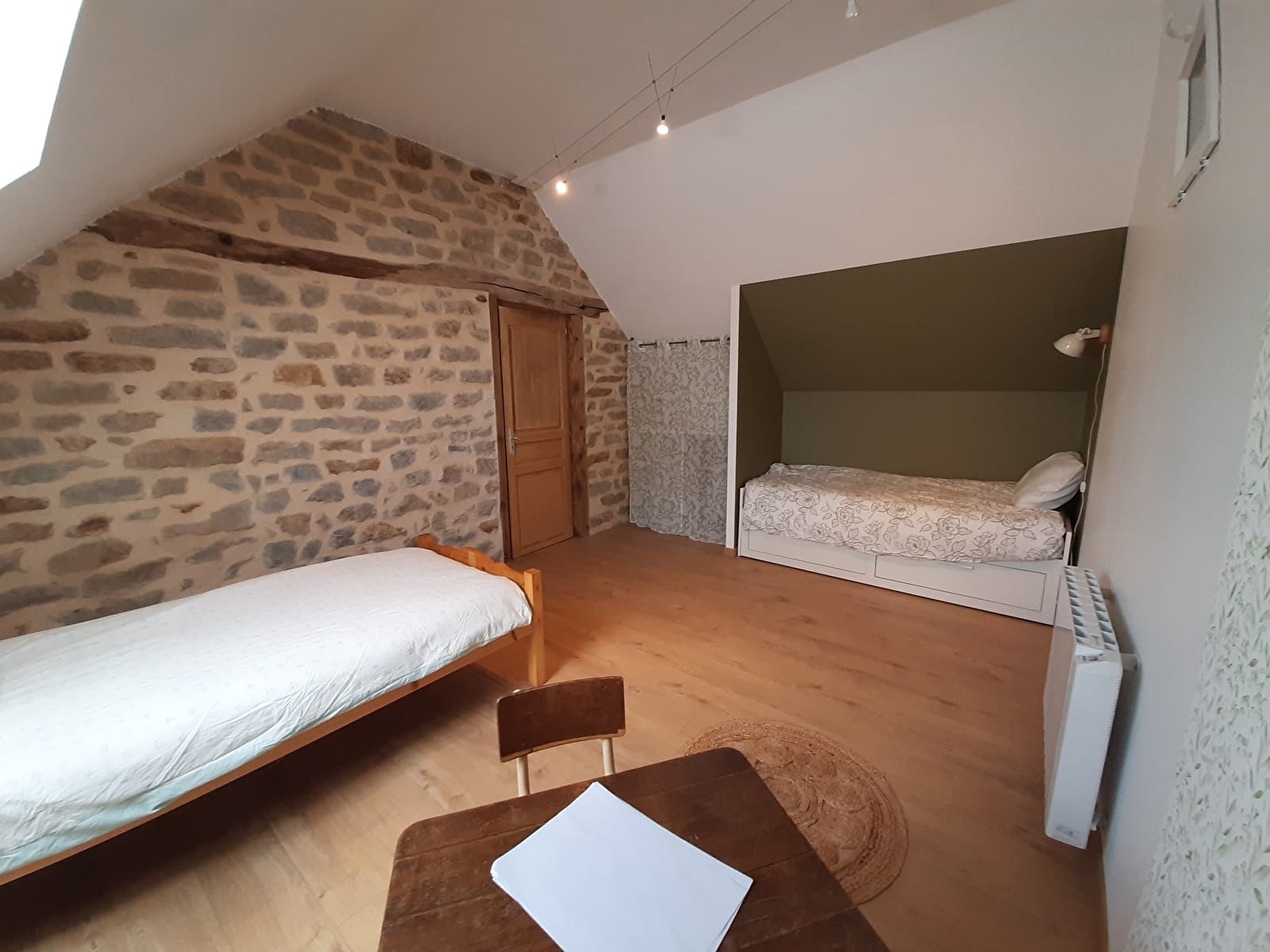 Venez profiter du charme bucolique de la campagne charolaise dans cette maison individuelle de 90 m² fraîchement rénovée avec cour et jardin privatifs. Toutes commodités sur place (boulangerie, supermarché, pharmacie...). Vous profiterez au rez-de-chaussée d'une cuisine équipée, d'un salon de 20 m² donnant sur le jardin comprenant une grande terrasse ronde en tommettes et d'une salle d'eau avec une grande douche. 2 chambres à l'étage : l'une avec un lit double de 160x200 cm et la seconde avec 2 lits individuels (80x200 cm et 90x190 cm). Toutes les pièces comportent un radiateur électrique.