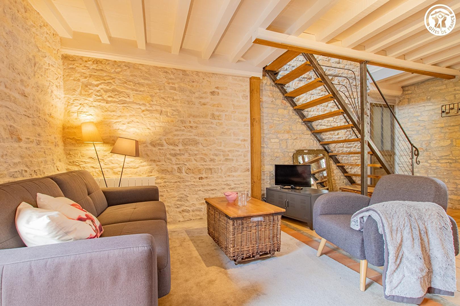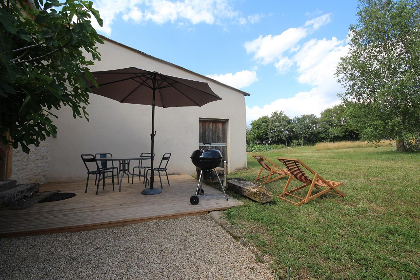 Composition : Maison mitoyenne voisinant l'habitation des propriétaires & 2 autres gîte (indépendance totale). Wifi (fibre). Chauffage électrique. Poêle à bois. Lave-linge dans buanderie commune. Rdc surélevé (2 marches) : séjour-cuisine-salon (canapé convertible 2 p. 140x190cm), salle d'eau (douche/wc). Chambre-mezzanine au 1er étage (2 lits 1 p. 80x190cm modulables en lit 2 p. 160x190cm) avec salle de bain "ouverte" (baignoire d'angle). Balcon abrité + terrasse + jardin + parking privés. Local vélo + table ping-pong en commun. Petits commerces dont supérette 5.5 km.