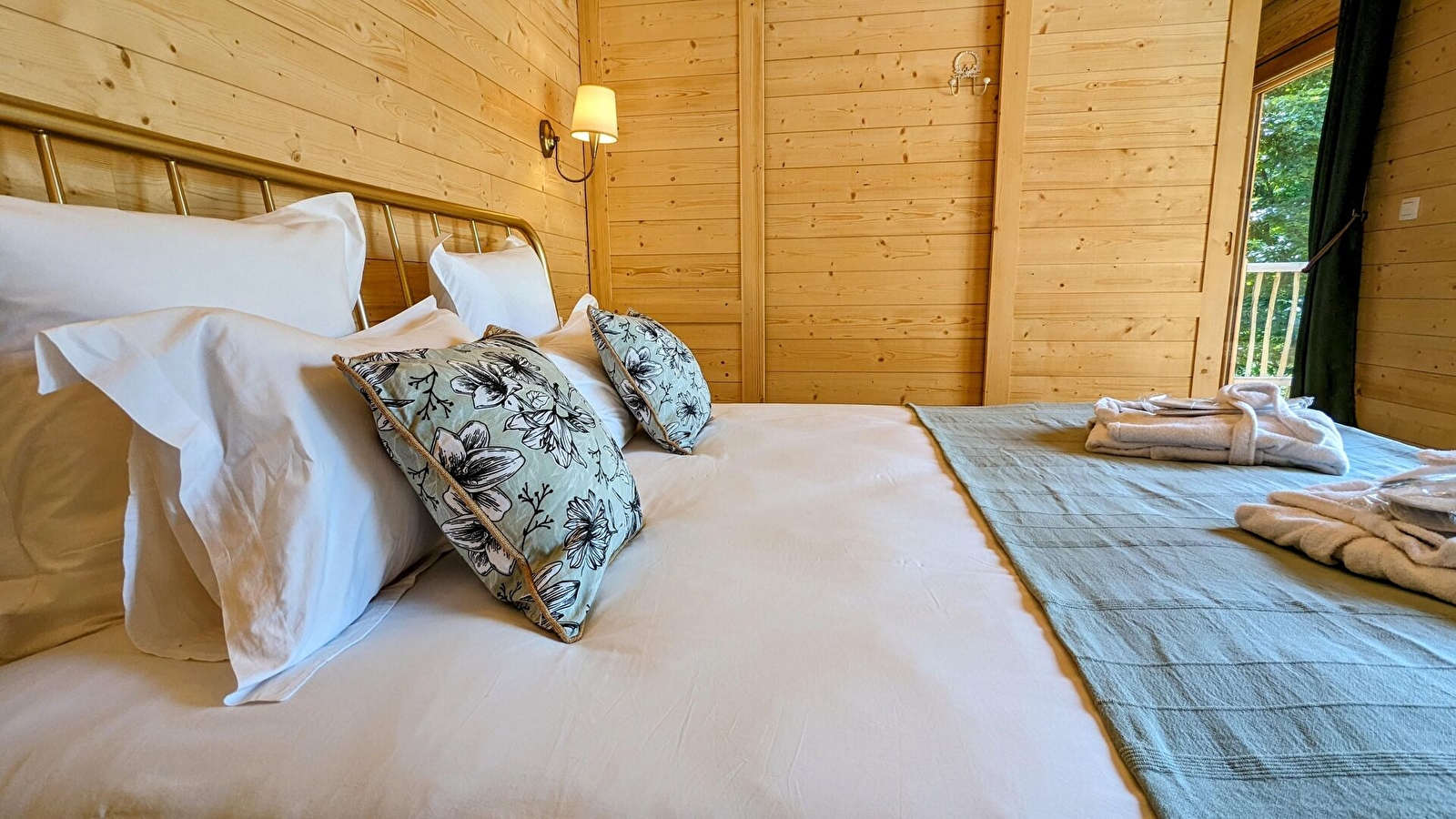 Profitez d'un séjour détente dans une cabane très confortable et à la décoration soignée, dans un cadre naturel, au calme et sans aucun vis-à-vis.