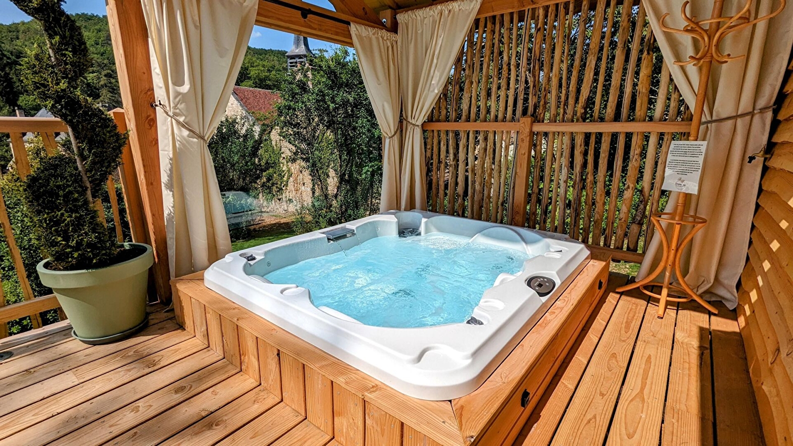 La terrasse avec SPA (ouvert toute l'année) et vue sur l'Abbaye est un réel plus, qui vous charmera à coup sûr...