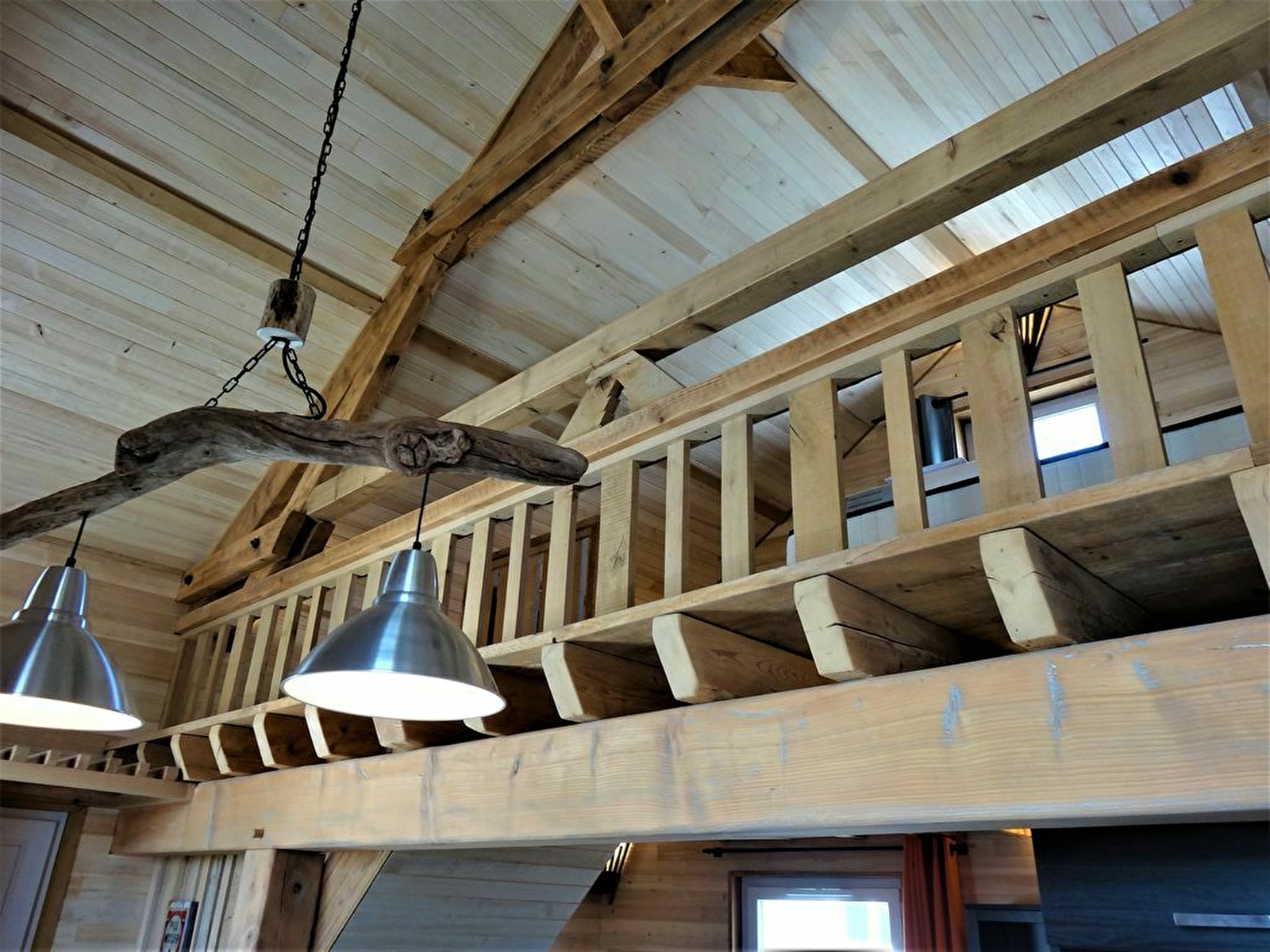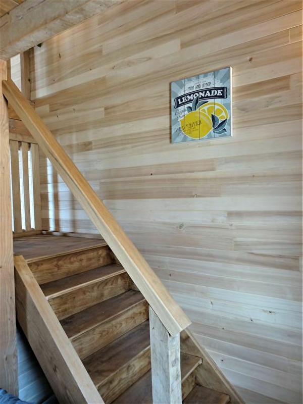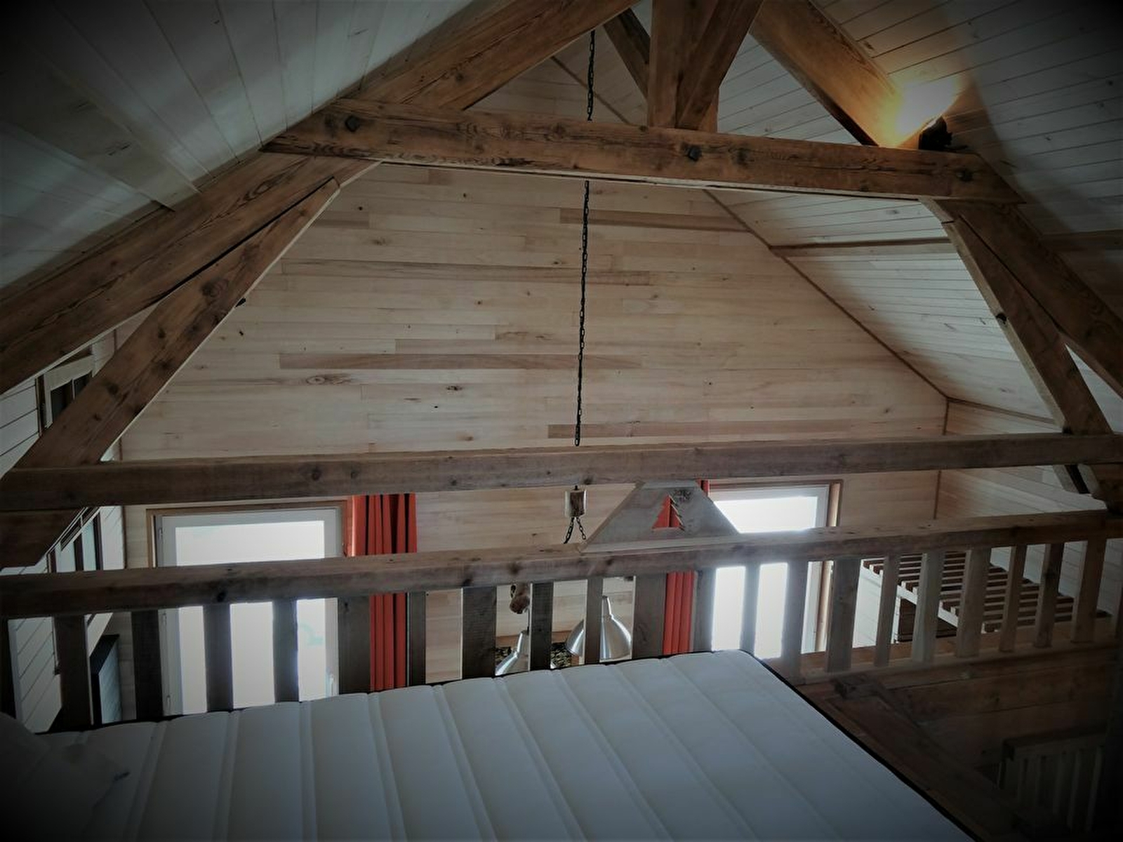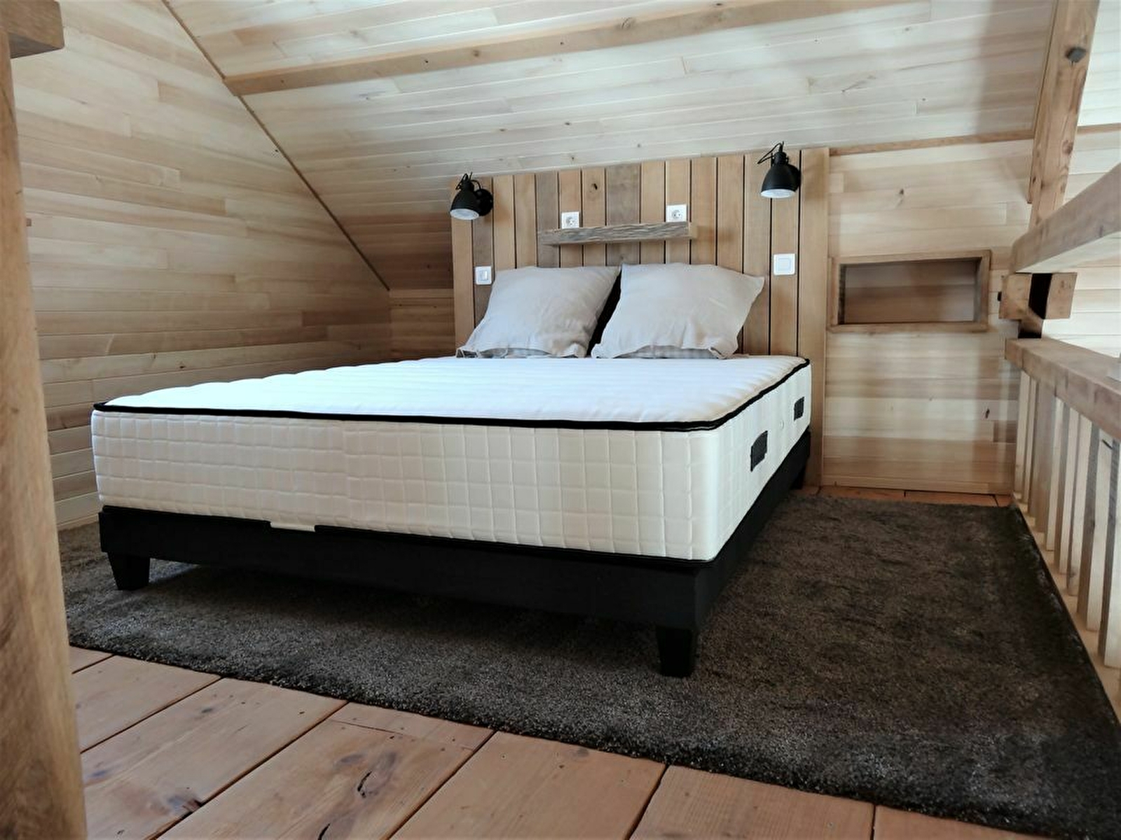 La chambre en mezzanine est bien ventilée et donne sur le séjour. Elle dispose d'un lit de 160.