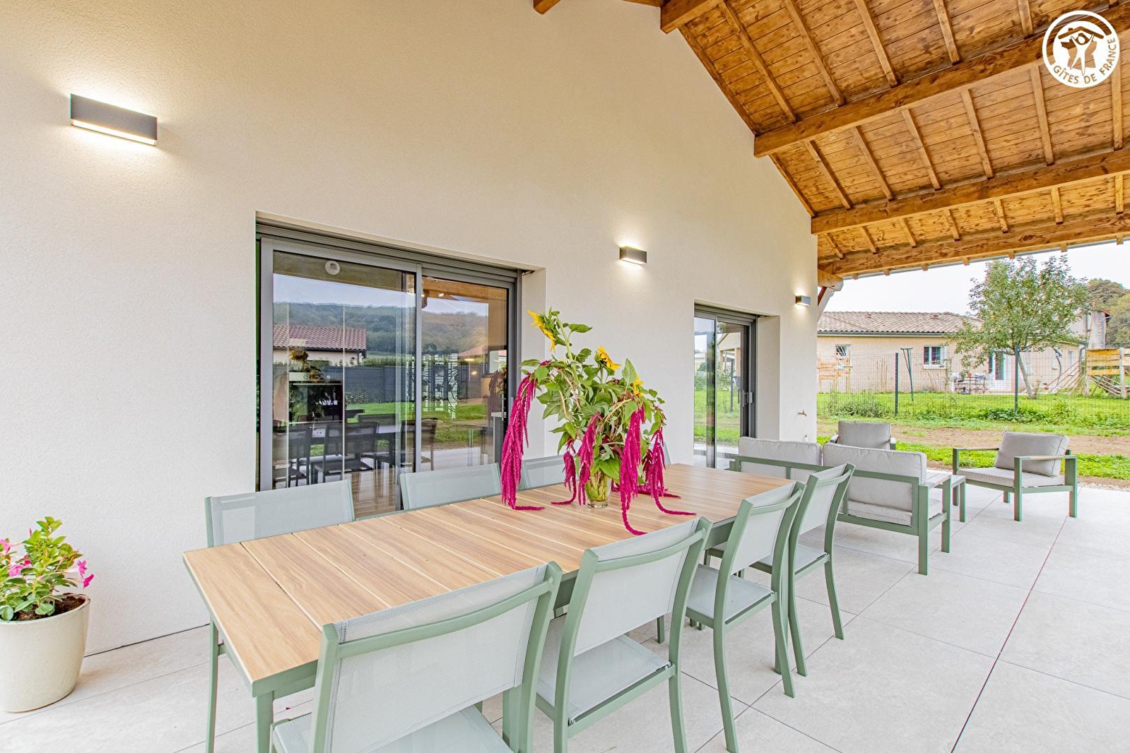 Belges d'origine et bourguignons de cœur & d'adoption (propriétaires de vignobles tout proche exploités en cépage Chardonnay), Isabelle & Étienne vous ouvrent les portes d'une très rare "maison passive" contemporaine d'avant-garde édifiée en 2025 ("éco-construction" littéralement exceptionnelle autonome à 90%), nichée au cœur d'un paisible hameau rural, à deux pas des vignes & prairies environnantes, aux confins d'un pittoresque petit village bourguignon blotti sous les collines boisées du massif Sud Bourgogne (vaste espace forestier sauvage à parcourir lors de relaxantes balades à pied ou VTT, offrant de splendides vues panoramiques jusqu'au Mont Blanc par temps clair !). Calme & tranquillité en pleine douce campagne tournugeoise, bucolique écrin préservé mixant viticulture, agriculture & pleine nature, protégé en ZNIEFF pour ses richesses faunistiques & floristiques (accolée à une vaste "Zone Natura 2000"). Somptueux sites & paysages à découvrir aux alentours. Gîte de grand confort. Spacieux & lumineux. Exceptionnelle pièce de vie de 73m² dotée d'un beau volume "cathédrale" abritant un spa 5 places, une très insolite cave "télescopique" & une atypique mini "bibliothèque de plantes vertes". Très élégant cachet contemporain. Ambiance zen & très douce. Cosy & douillet. Terrasse abritée sous un imposant auvent (40m²) ouverte sur un jardin engazonné de 1000m², complétés par une grande cour, parfait terrain de pétanque.