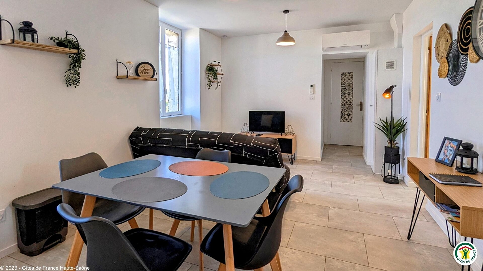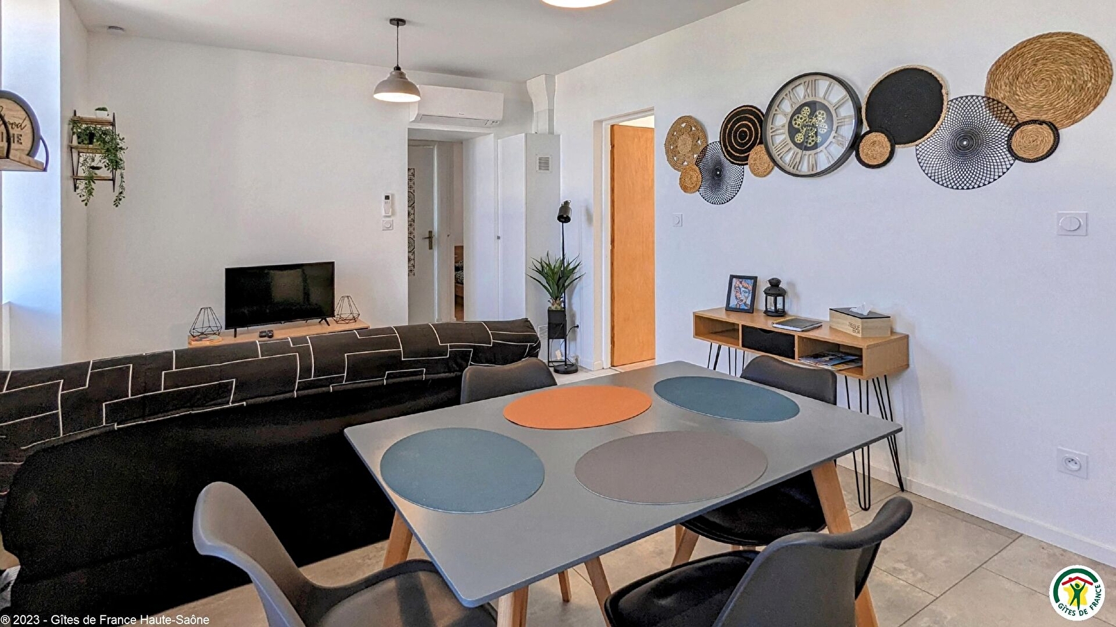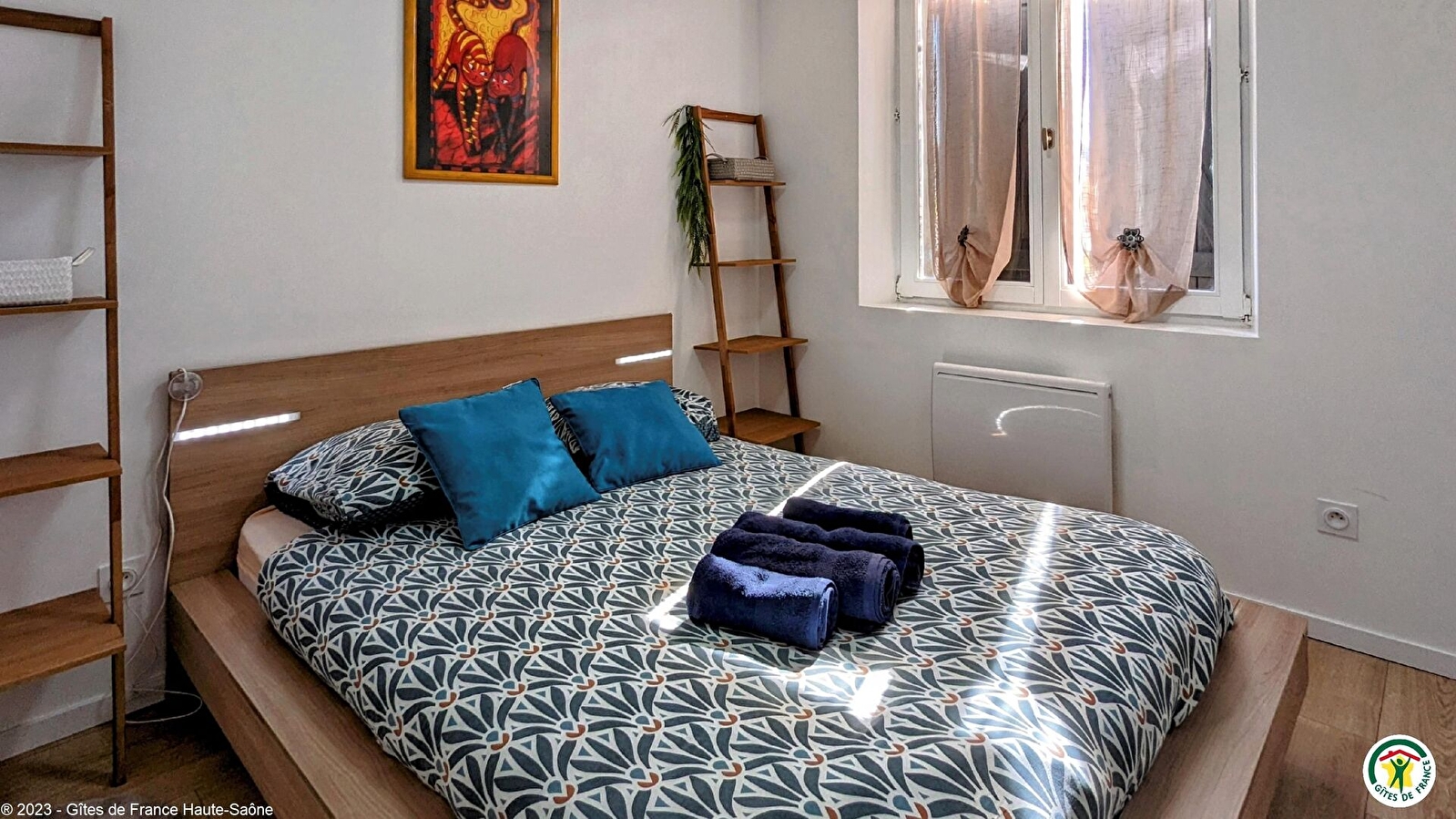 À Héricourt, dans un quartier calme, au 1er étage d'une maison comprenant un 2ème gîte, appartement entièrement rénové comprenant : cuisine ouverte sur séjour/salon, 1 clic-clac (140 cm), TV, Wifi, 1 chambre avec 1 lit de 140 cm et 1 chambre comprenant 1 lit de 160 cm et 1 dressing. Une salle d'eau avec douche et WC. Climatisation réversible. Jardin entièrement clos avec salon de jardin, barbecue. Parking aisé dans la rue. Un autre gîte est situé au rez-de-chaussée avec entrée et jardin indépendant (de l'autre côté de la maison) n° 70G4993 pour 6 pers.